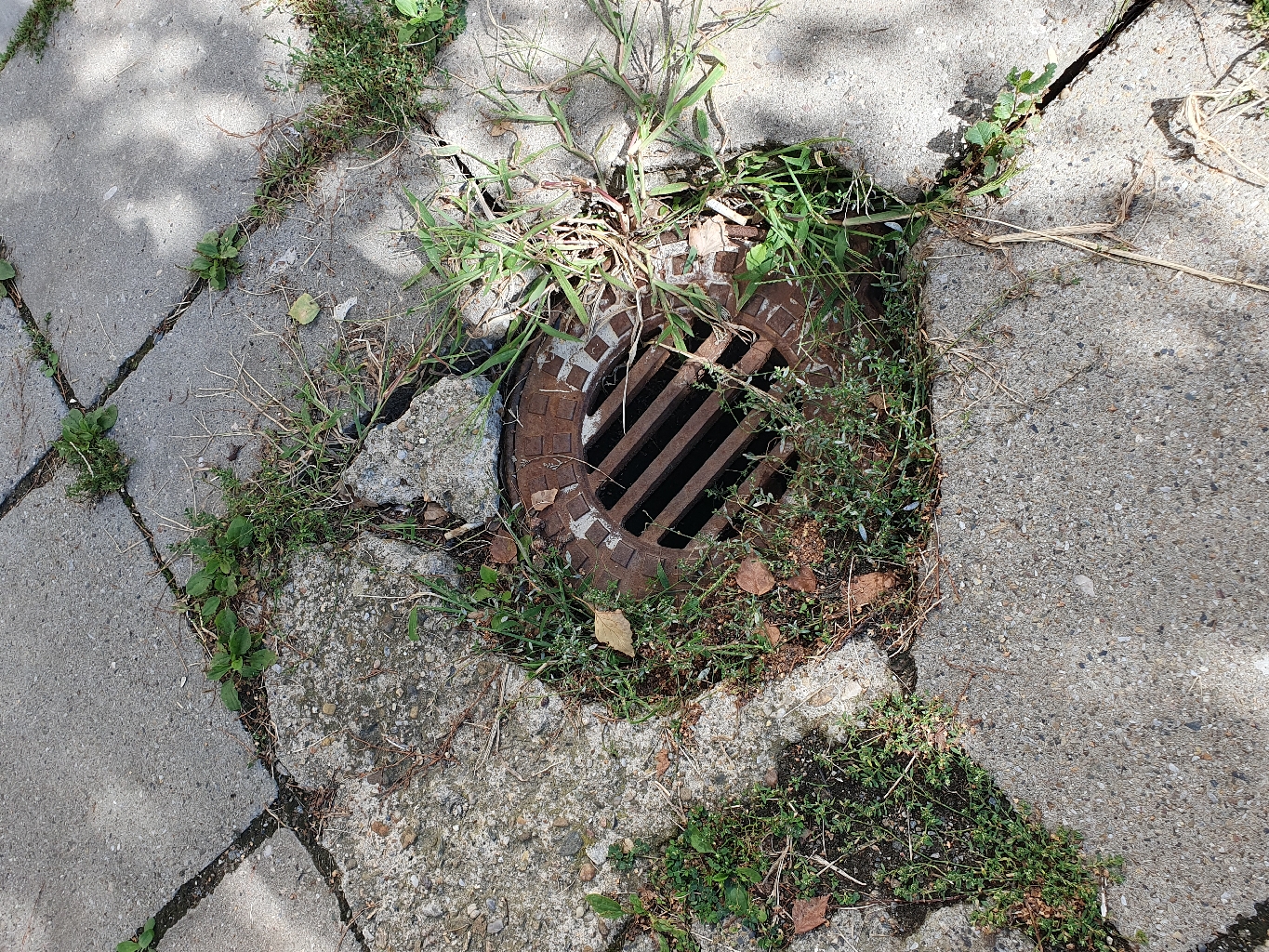 Prosíme o opravu rozpadajících se a nefunkčních kanálů ve vnitrobloku V Hůrkách 7.