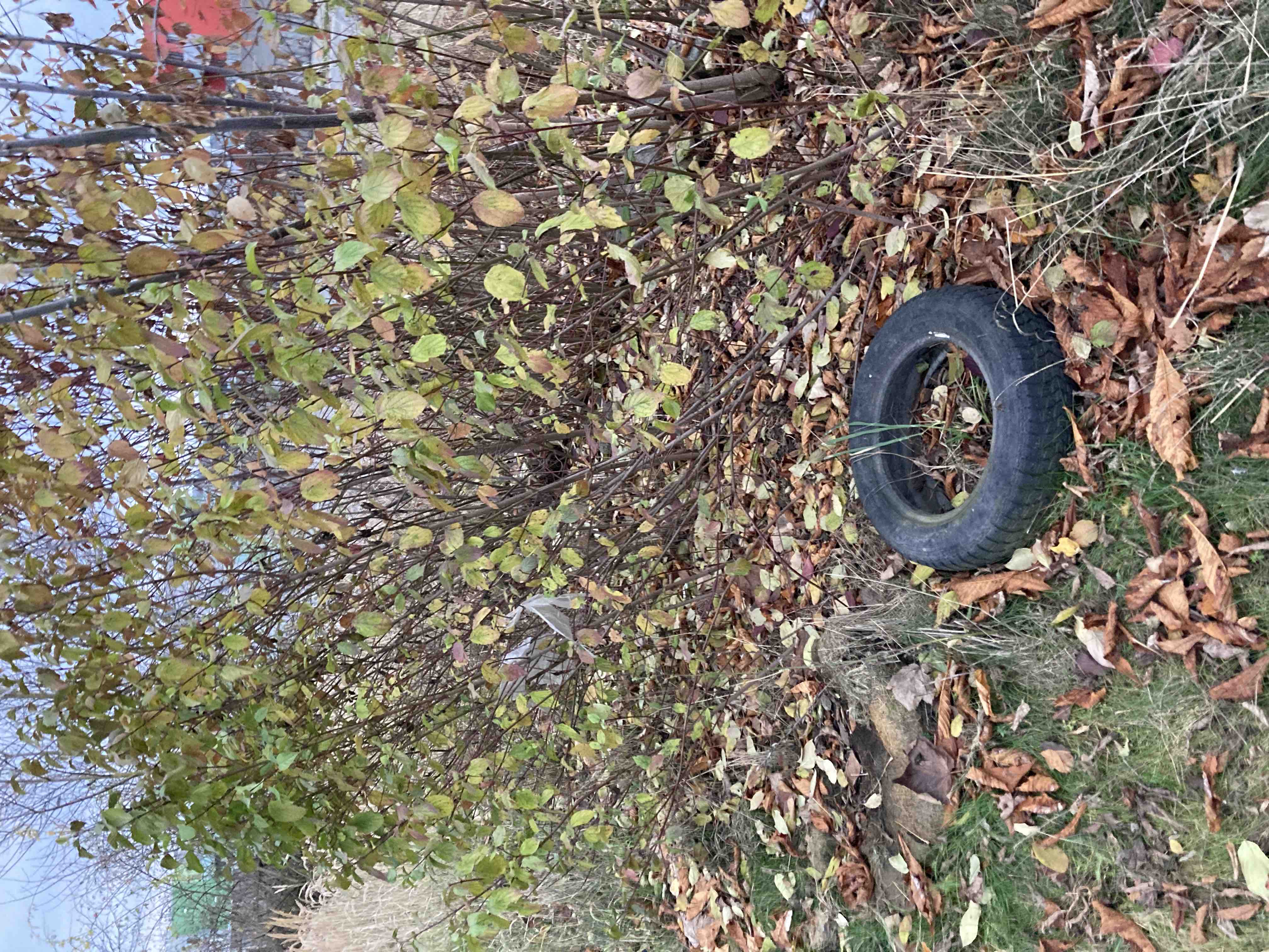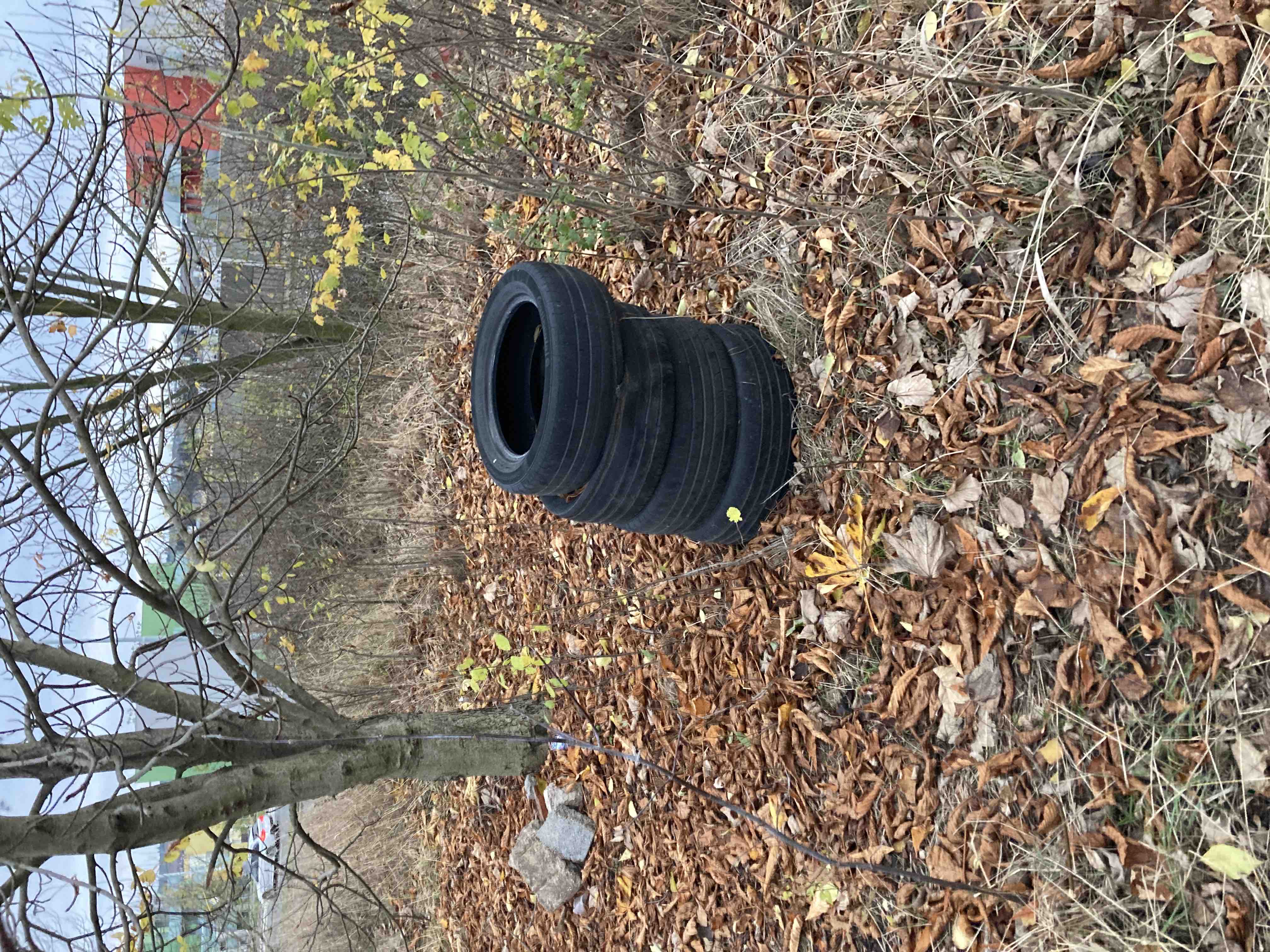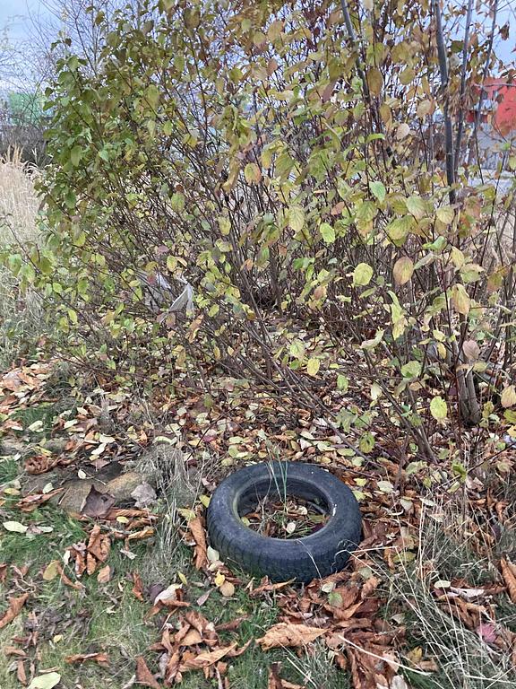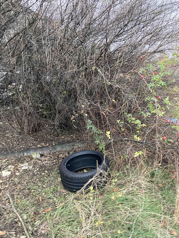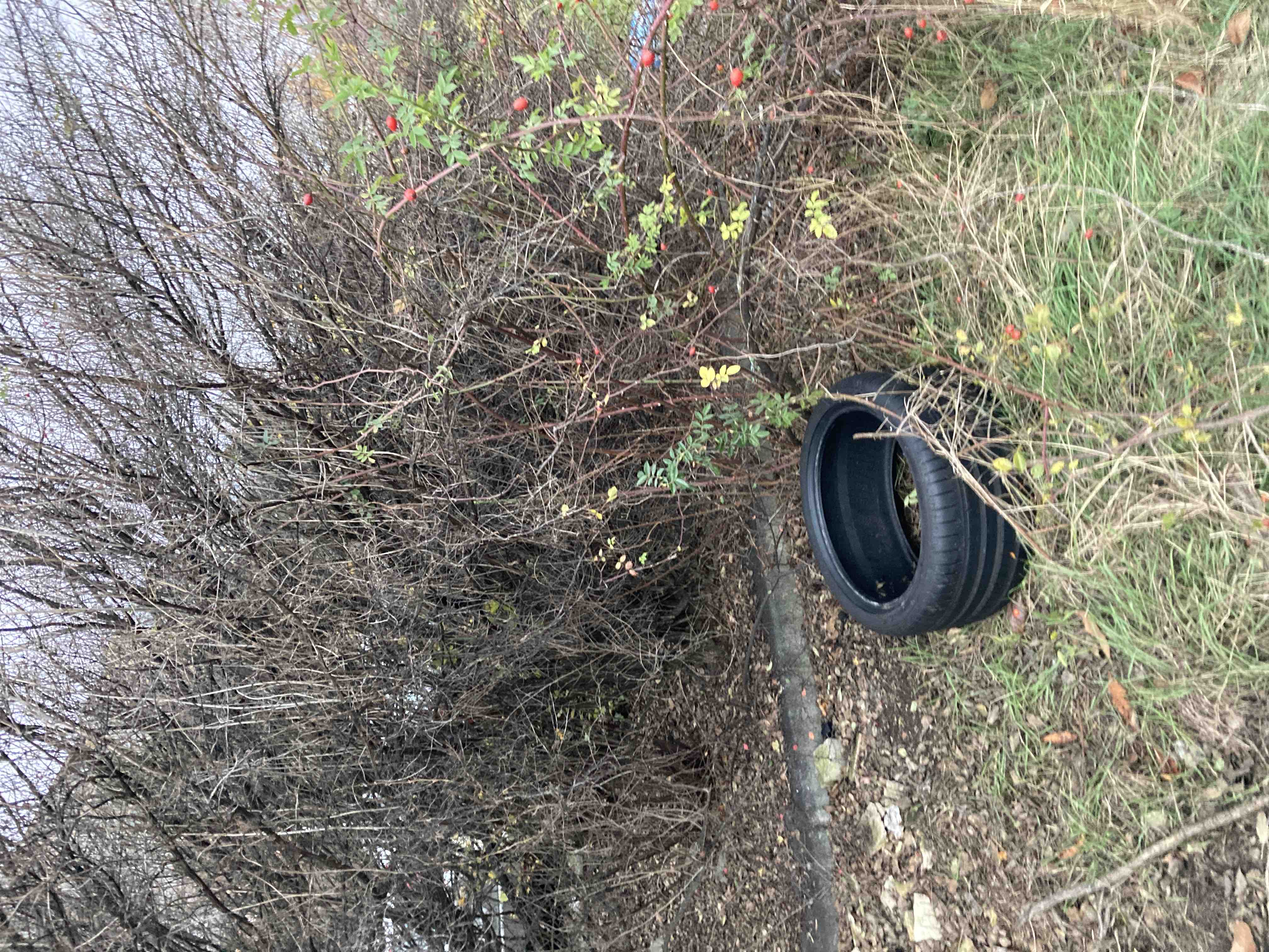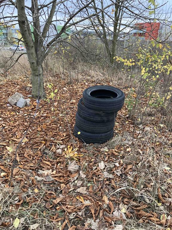 Vyhozene pneumatiky na nekolika mistech kolem parkoviste