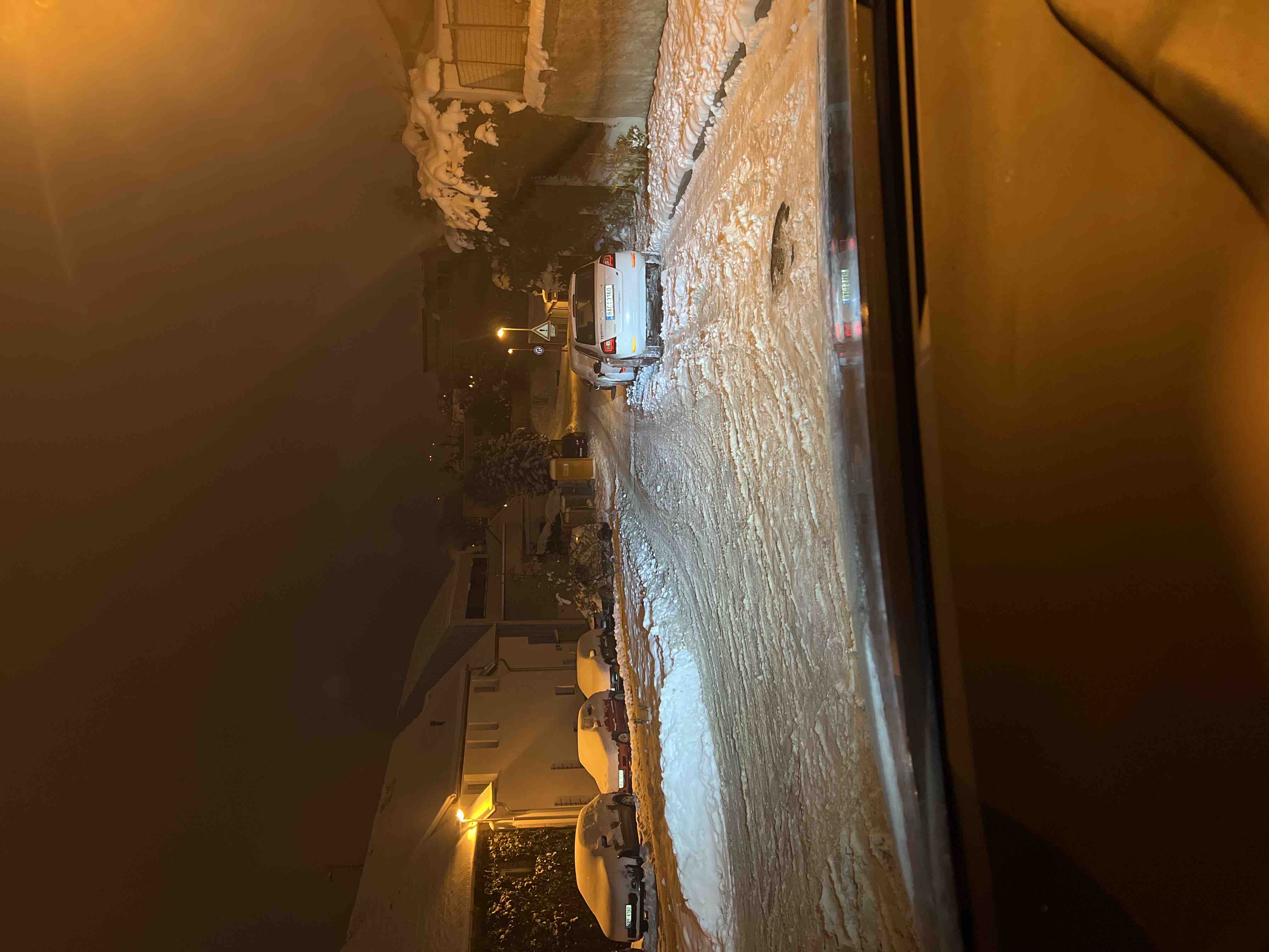 ze snímku je patrné, že ulice byla prohrnována sněžným pluhem.