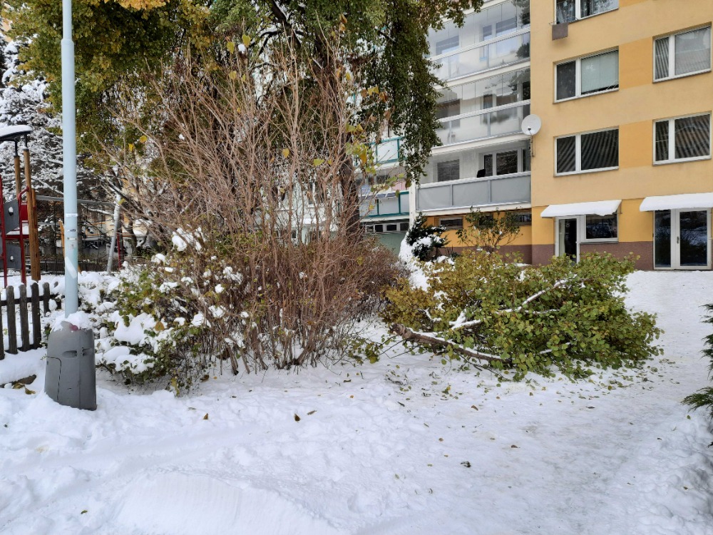 o víkendu spadla docela velká větev na chodník ze stromu v atriu Vlachova / Flöglova.