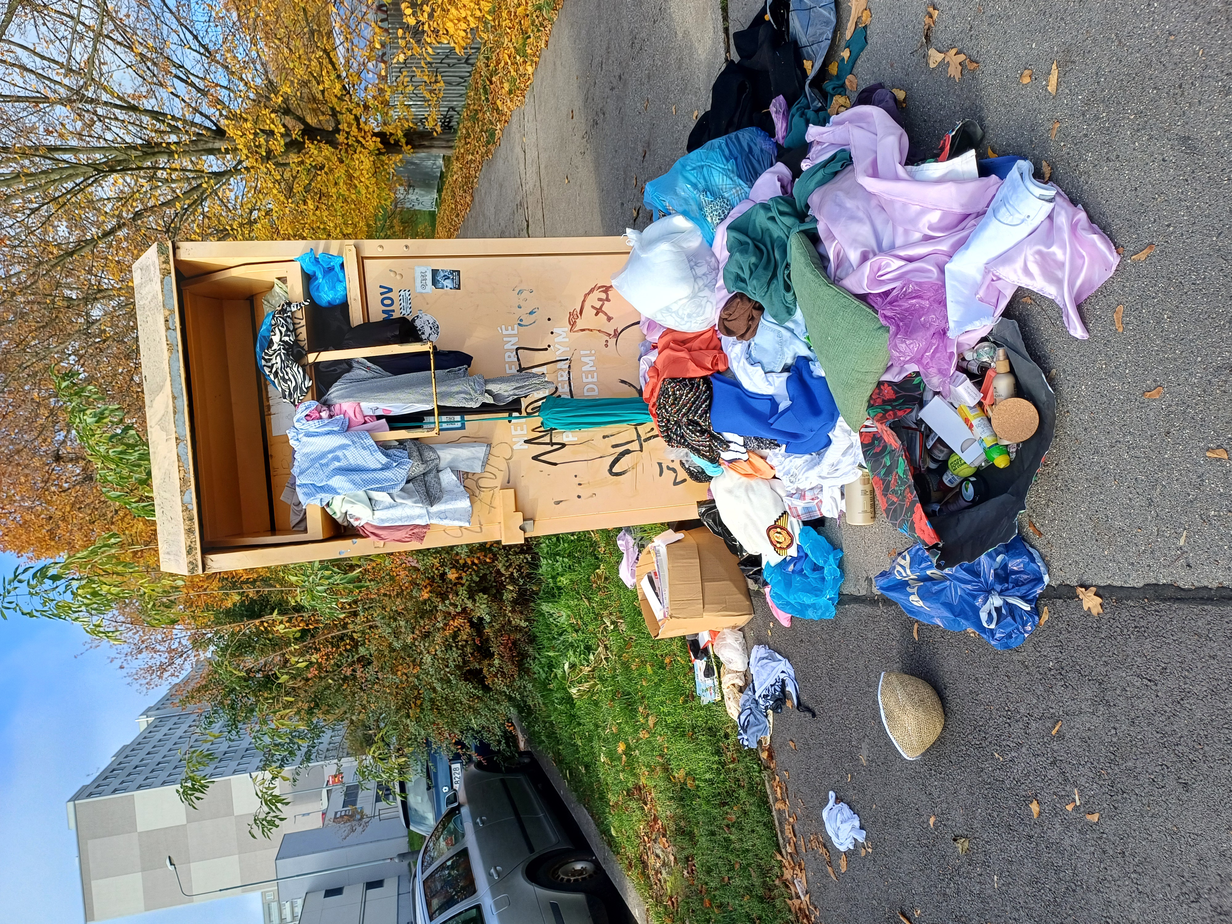 Dobrý den, při místním šetření dne 6.11.2024 bylo zjištěno, že poházené šatstvo je uklizeno.
