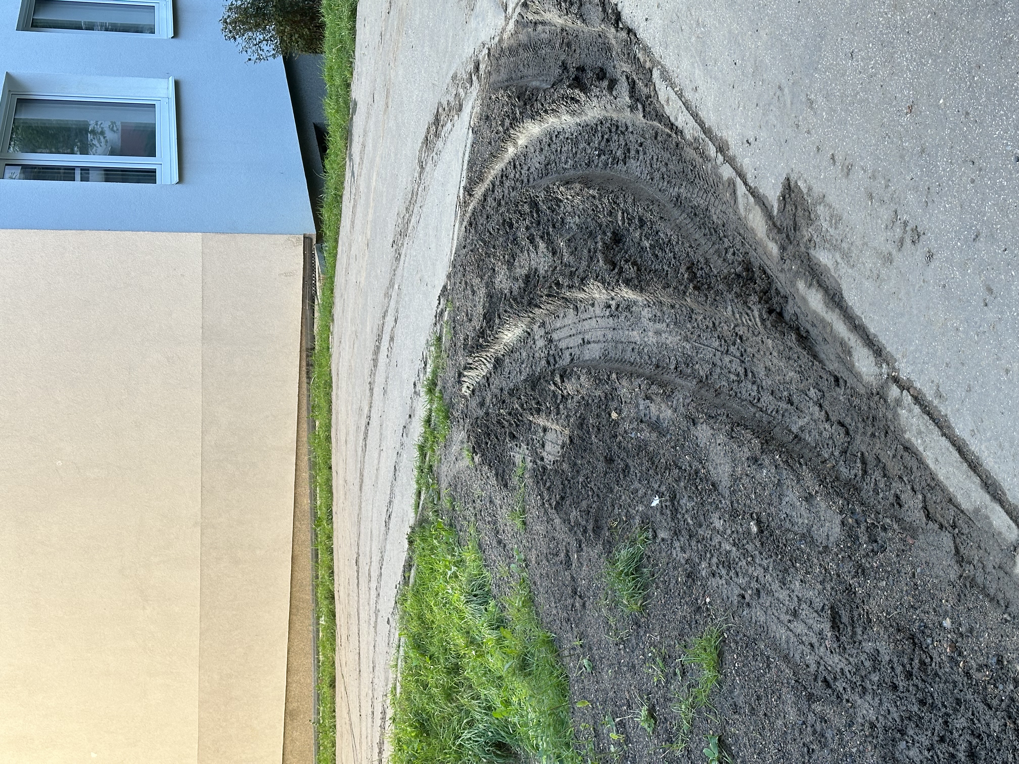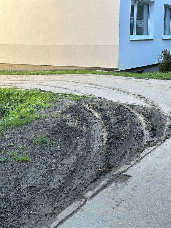 Poškození čerstvě upraveného a osetého trávníku po stěhování