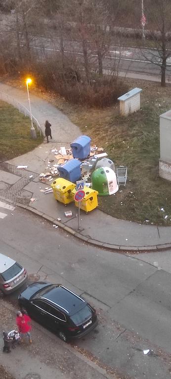 Netřeba slov, snad jen předat všem SVJ v ulici Neustupného, kamery na budově centra Luka, Policie a MP důkladnější kontroly v městské části. Stále opakuji že toto není vhodné místo pro kontejnery na tříděný odpad. To místo má být pod zámkem jako je to jinde, nebo alespoň tak upraveno aby bylo stižené pro takové to chování. Děkujeme slušný obyvatelé z ulice. BP