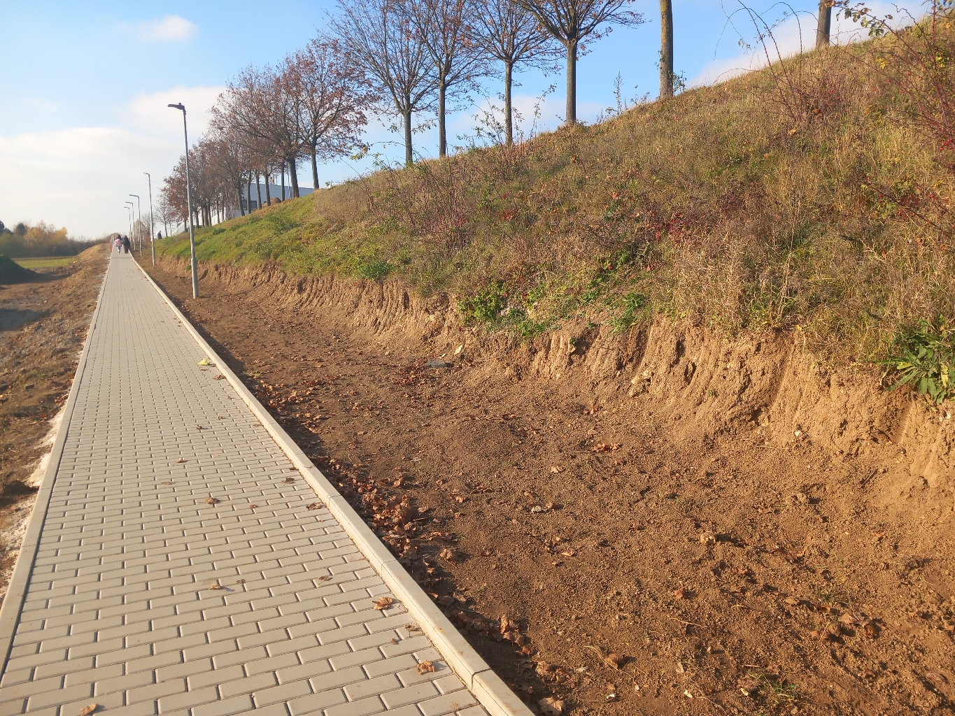 Bylo by možné na nové cestě přidat pár laviček? Stačilo by přesunout ty že staré cesty. Myslel jsem, že i z lampami se přesunou i lavičky. I třeba zasetí trávy by neuškodilo.