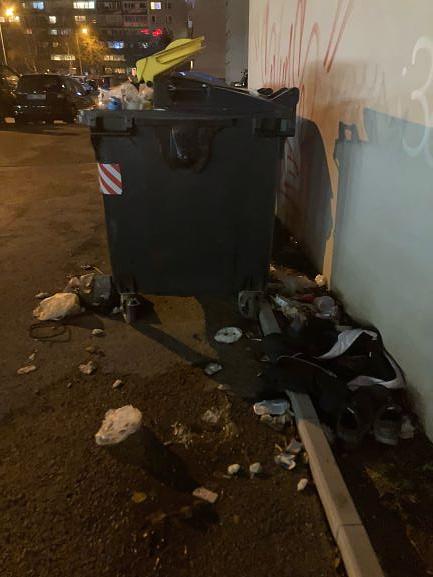 Již minimálně 2 měsíce nejsou tyto kontejnery odvázěny a odpadky z nich teď vítr rozfoukal po celém okolí.