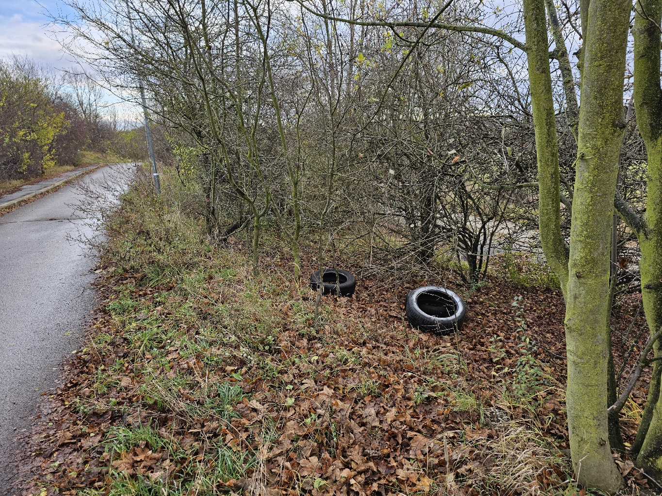 Dobrý den, jedná se o soukromý pozemek, spoluvlastníci budou vyzváni k zajištění úklidu. Upozorňujeme, že občané pneumatiky mohou odevzdat do sběrného dvora zdarma.
