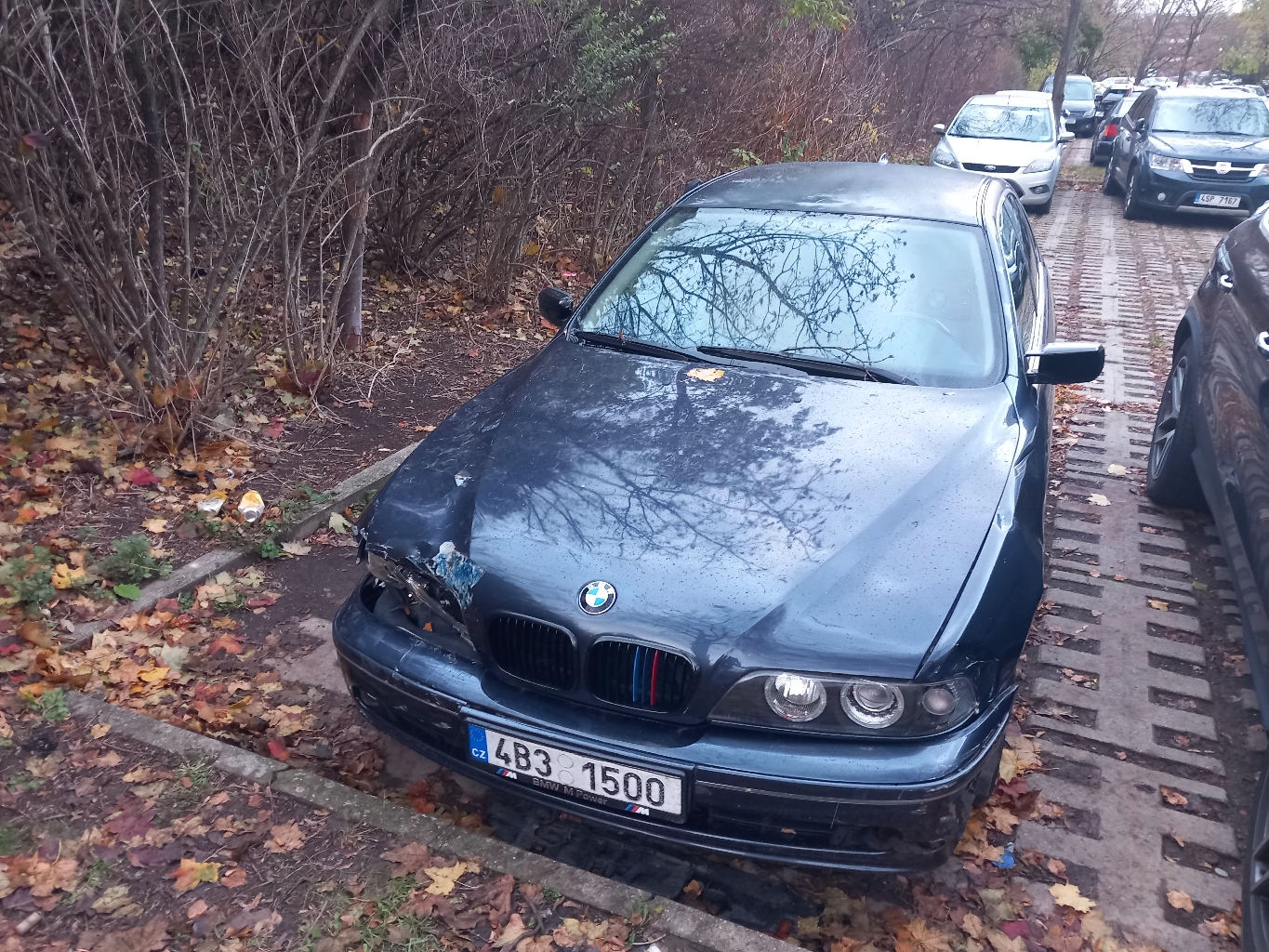 Rozbité auto na parkovišti Běhounkova