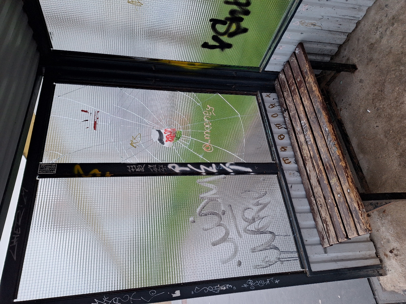 Děkujeme za upozornění ohledně poškození skleněných výplní přístřešku Červeňanského. Přístřešek bude opraven. Dopravní podnik hl. m. Prahy.