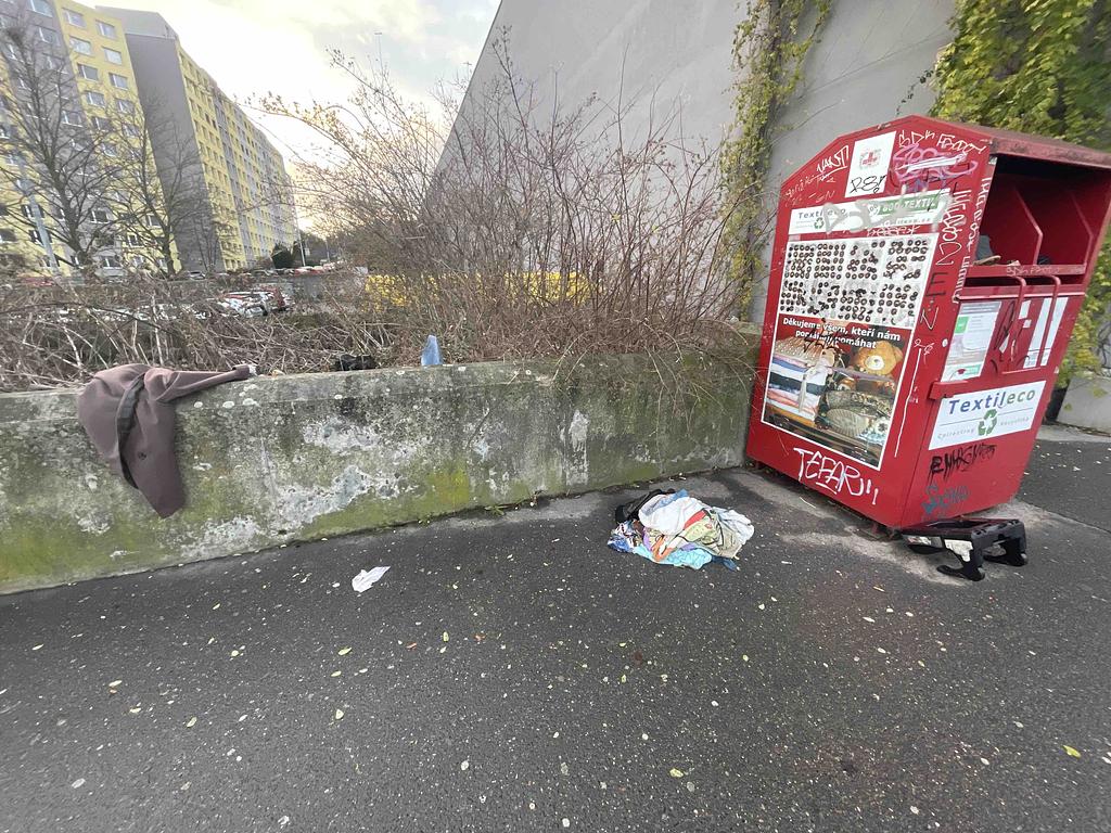 Dobrý den, Vámi nahlášená závada byla postoupena společnosti Textil -eco k zajištění úklidu. Děkujeme za upozornění.