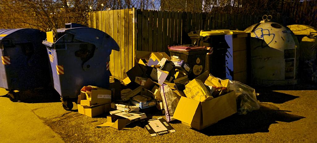 Dobrý den, děkujeme za Váš podnět a sdělujeme, že při pravidelné kontrole dne 02.01.2025 byl na místě zjištěn pořádek a odpad byl pravidelným svozem odvezen a místo bylo uklizeno.