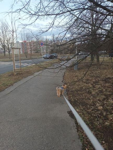 Posilam foto stromů, jejichž větve zasahují do chodníku ve výši očí (nepříjemné a nebezpečné) a to z 2 krásných lip v ul. Archeologicka, ktere je potreba oriznout.