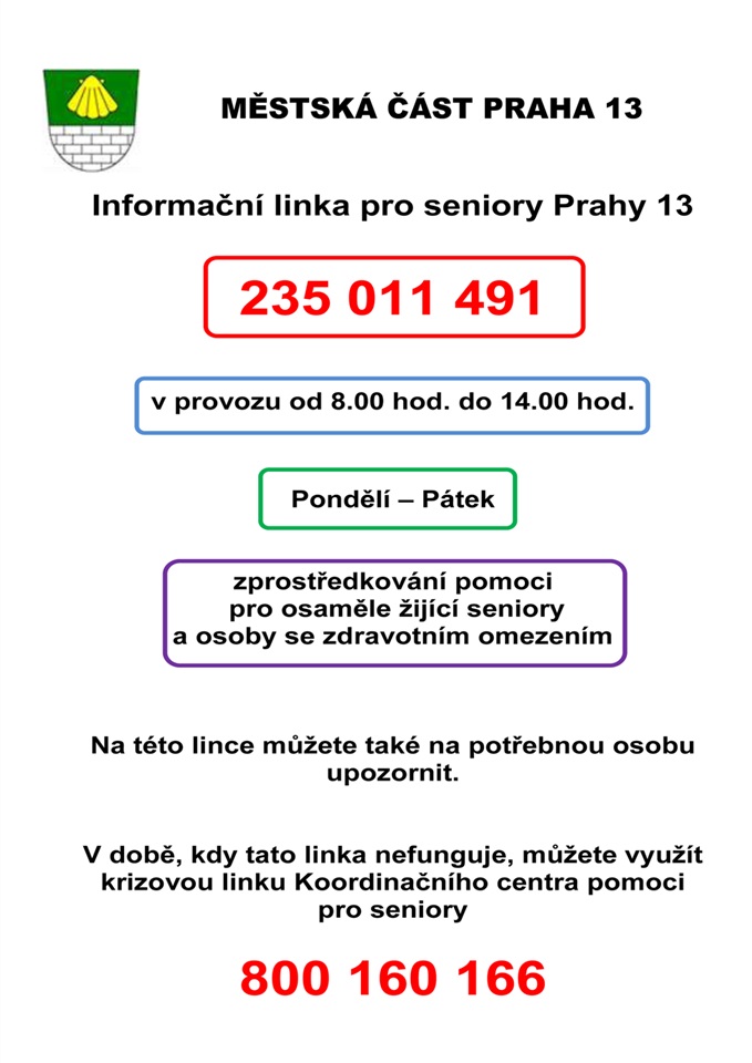 Městská část Praha 13 zřídila novou infolinku 235 011 491 pro seniory