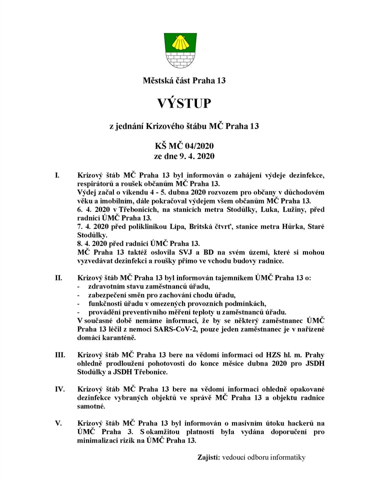 Krizový štáb rozhodl mj. o měření teploty zaměstnanců