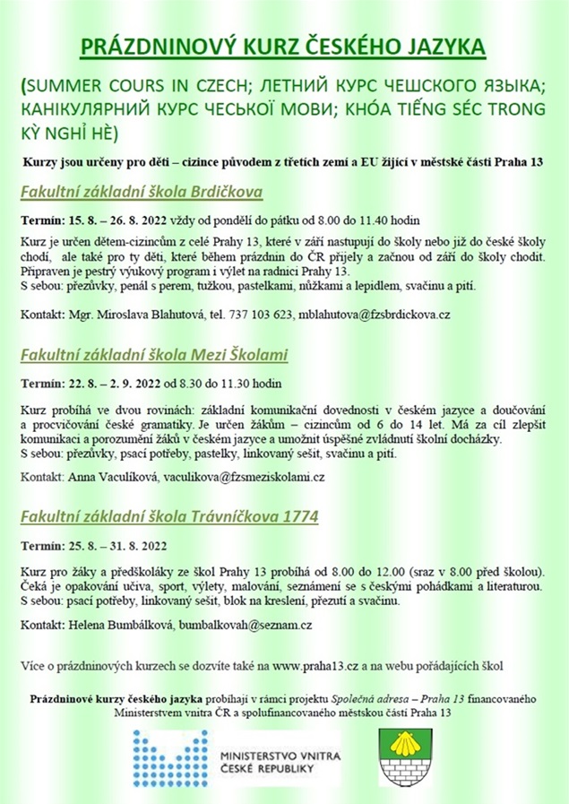 – prázdninový kurz českého jazyka