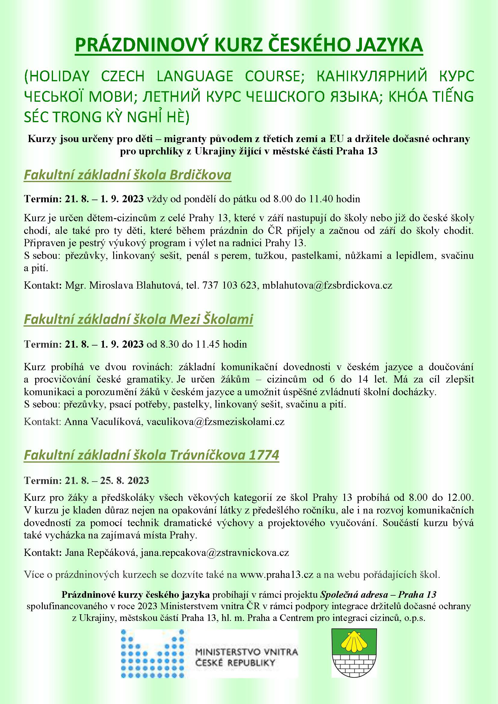- Informační telefonní linka MV ČR pro ukrajinské občany: +420 974 801 802 a e-mail: ukrajina@mvcr.cz