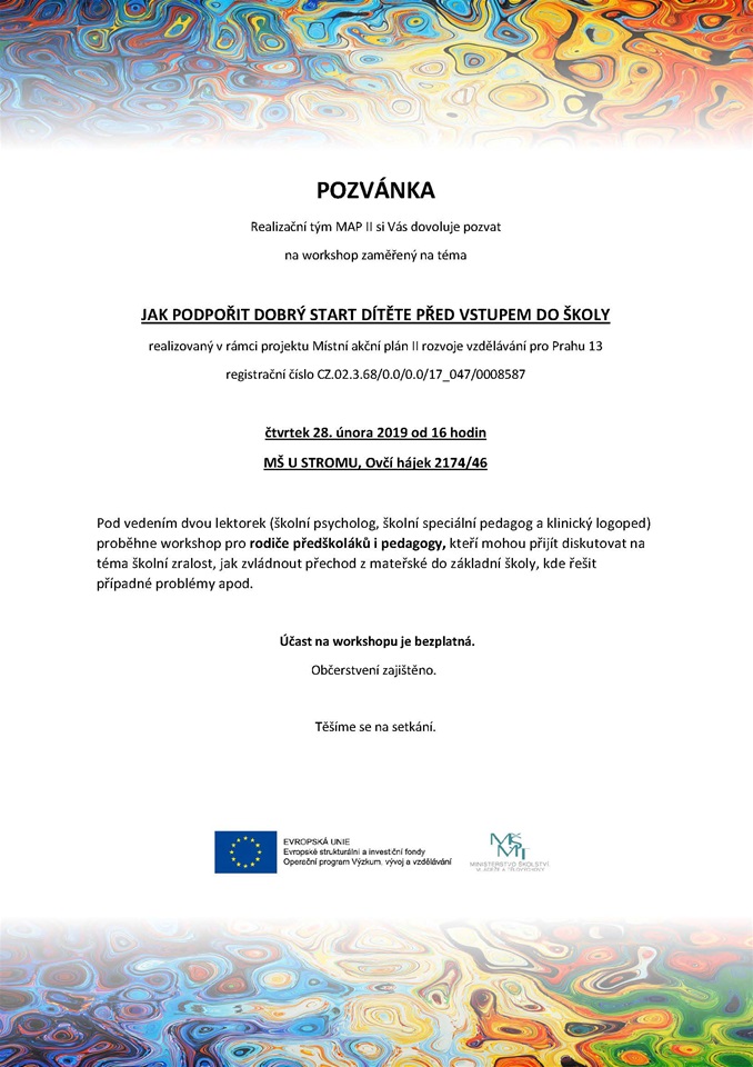 Workshop se bude konat ve čtvrtek 28. února od 16.00 v MŠ U STROMU