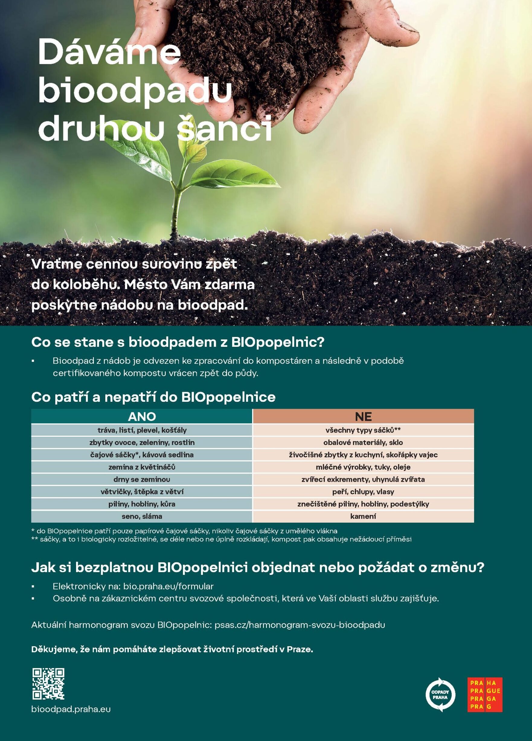 Bioodpad lze zdarma odevzdat také do sběrného dvora na adrese: Puchmajerova 50, Praha 5.