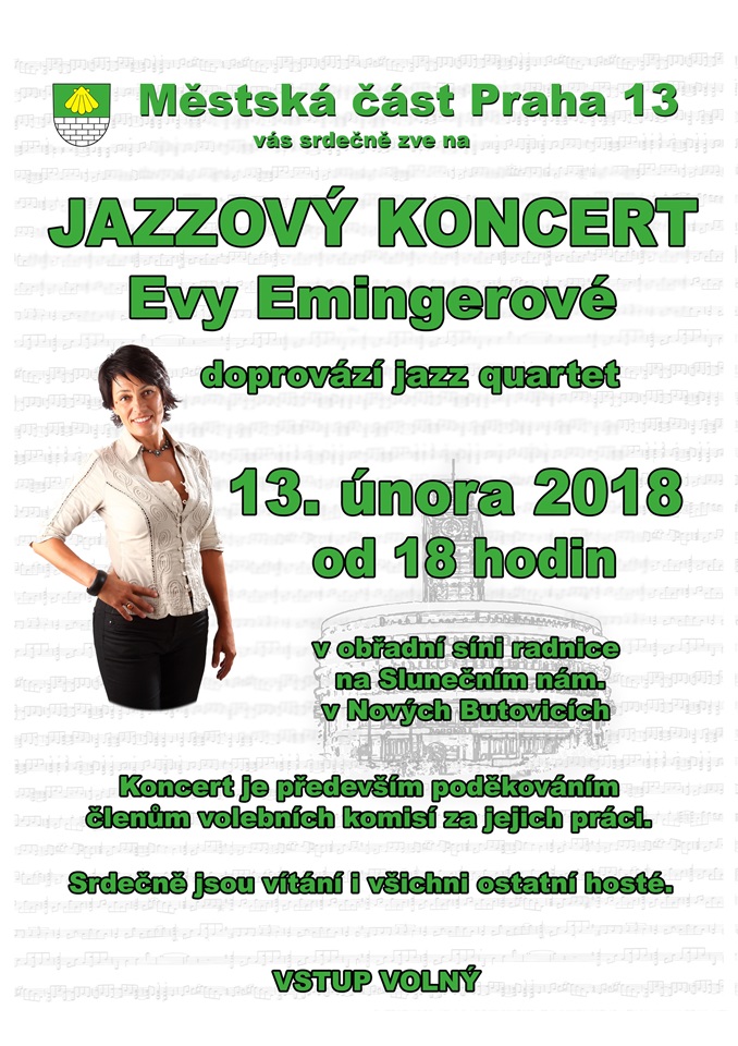 festivalu v americkém San Diegu 2005, hostování v Semaforu..Jazzový koncert Evy Emingerové společně s Jazz Quartetem se koná 13. února od 18.00 v obřadní síni radnice.
