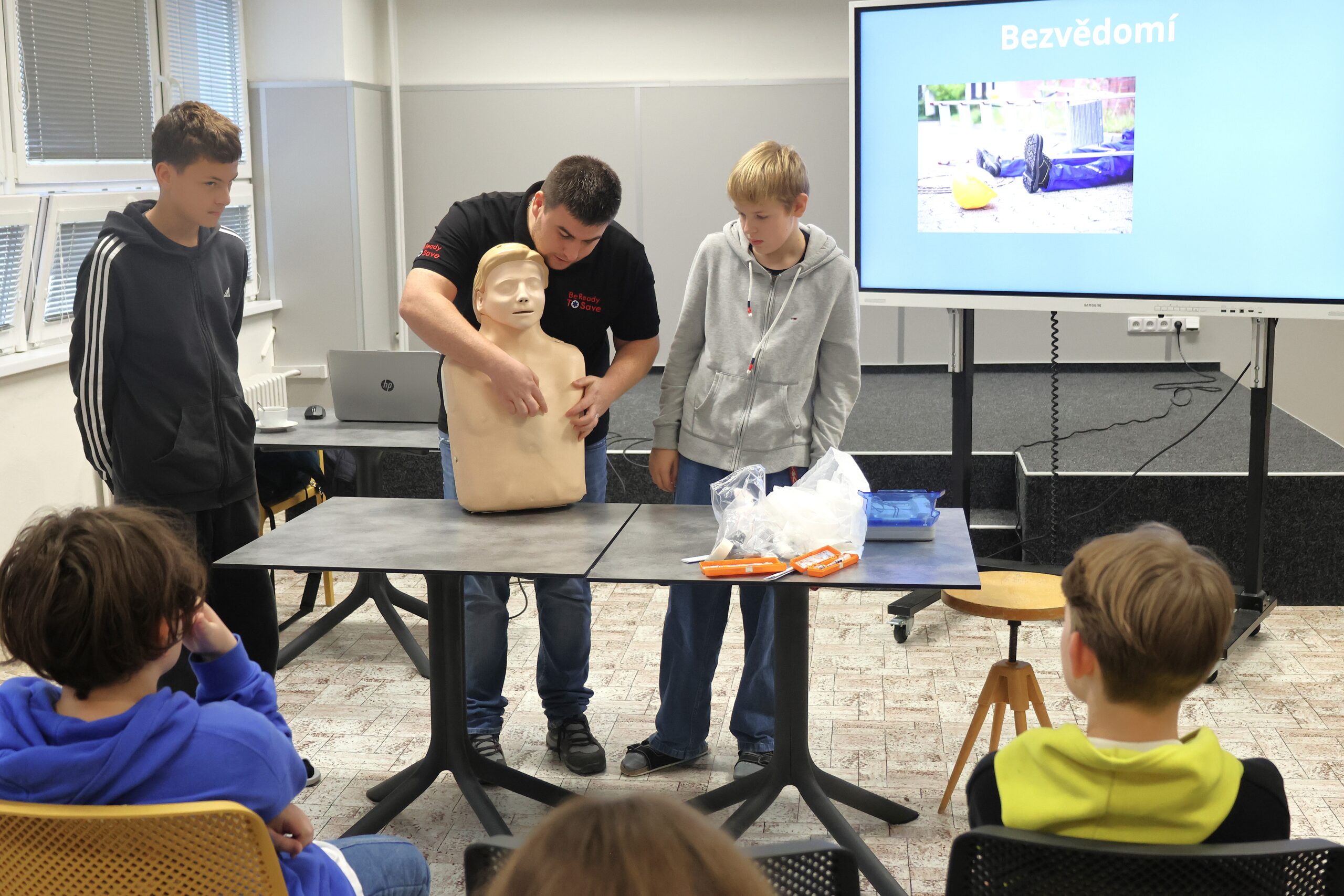 Kurzy první pomoci jsou vedeny odborníkem, profesionálním záchranářem a zaměřují se na praktické dovednosti, jako je resuscitace, zastavení krvácení, obvazování ran, nebo poskytování první pomoci v případě úrazů. Program je přizpůsoben věku žáků, aby byl srozumitelný a efektivní. Děti se učí nejen teoretické základy, ale mají také příležitost si vše vyzkoušet na modelových situacích.