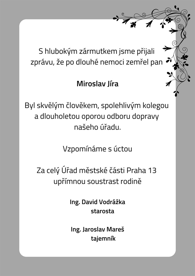 Po dlouhé nemoci zemřel Miroslav Jíra