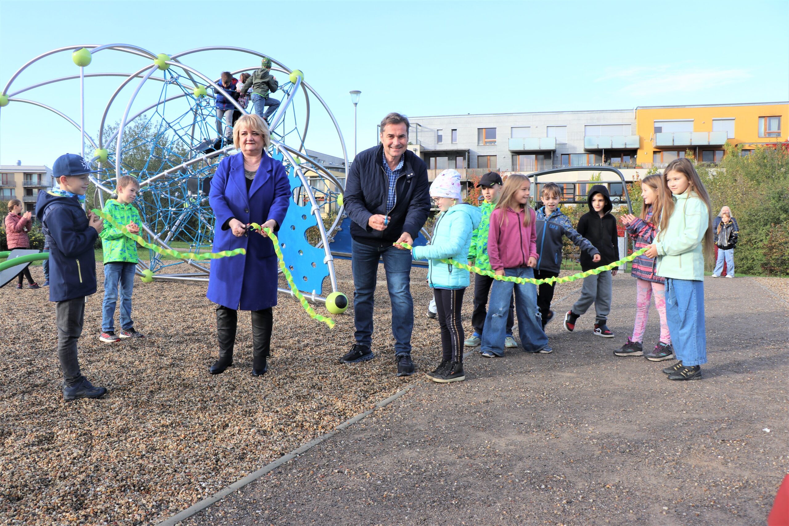 V Dalejském parku nedaleko Prokopského údolí v Praze 13 mají děti k dispozici nové hřiště. Slavnostního otevření se zúčastnili starosta Prahy 13 David Vodrážka, místostarostka Marcela Plesníková a děti z místní školy