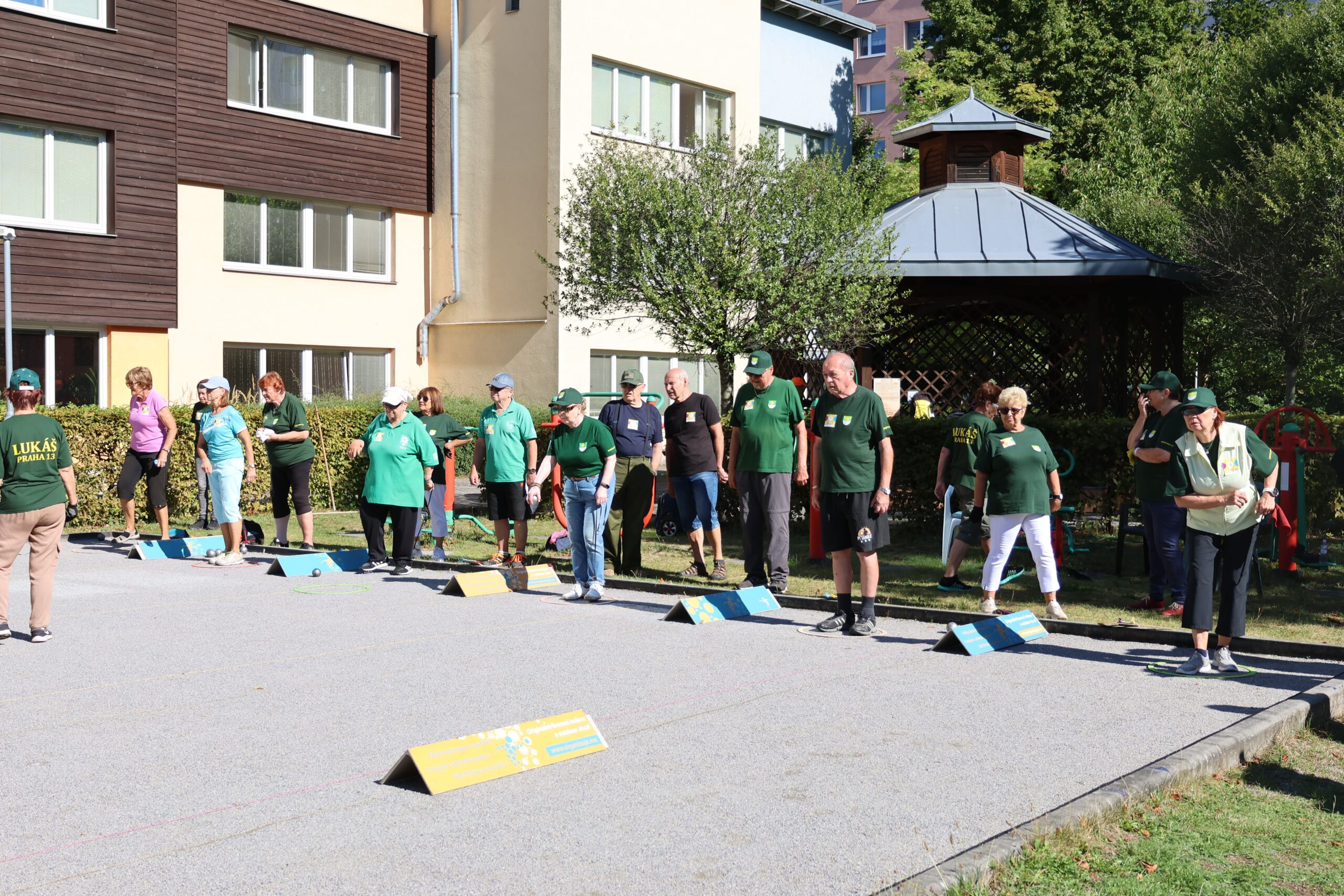 13.ročník seniorského turnaje pétanque O pohár starosty MČ Praha 13 se tradičně uskutečnil u Lukáše – Střediska sociálních služeb Prahy 13. Zájem ze strany seniorů byl velký, a tak museli organizátoři před začátkem narychlo přidávat jedno hřiště, aby si zahráli všichni.