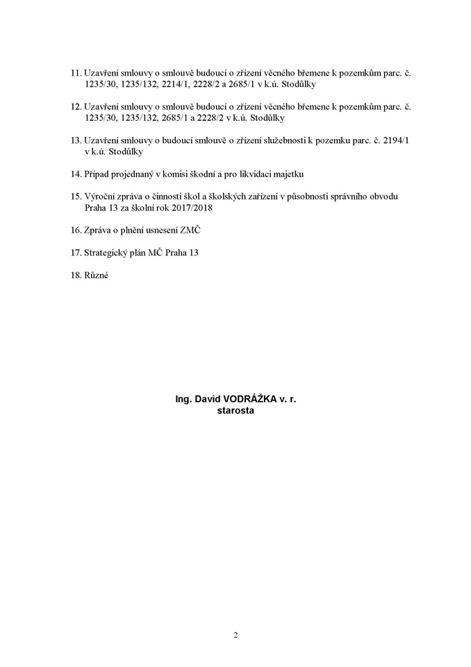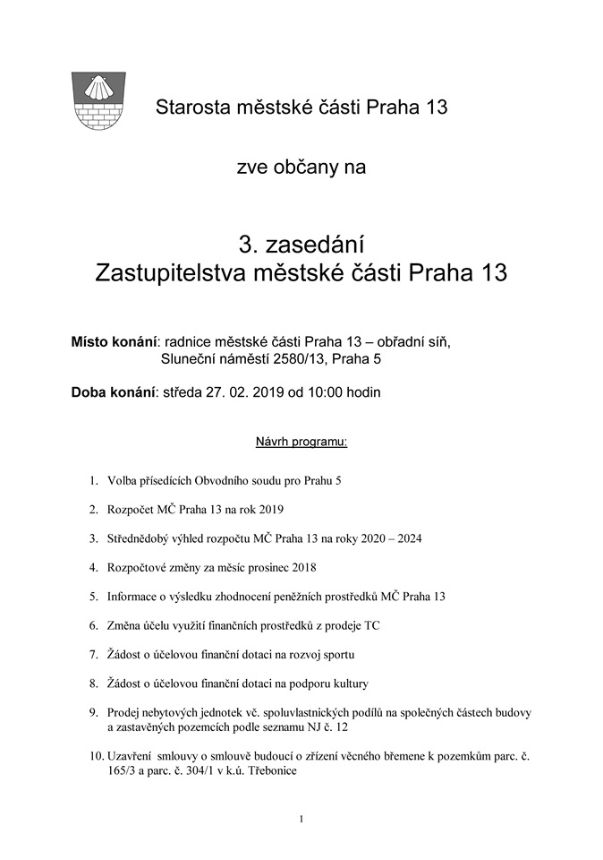 Ve středu 27. 2. 2019 od 10.00 na radnici MČ Praha 13