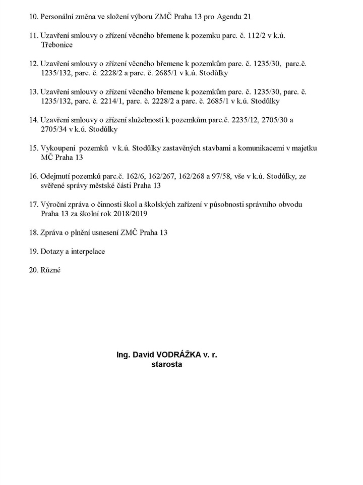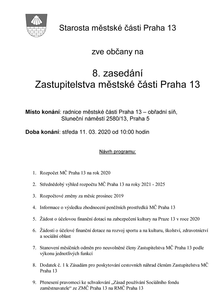Ve středu 11. 3. 2020 od 10.00 na radnici MČ Praha 13