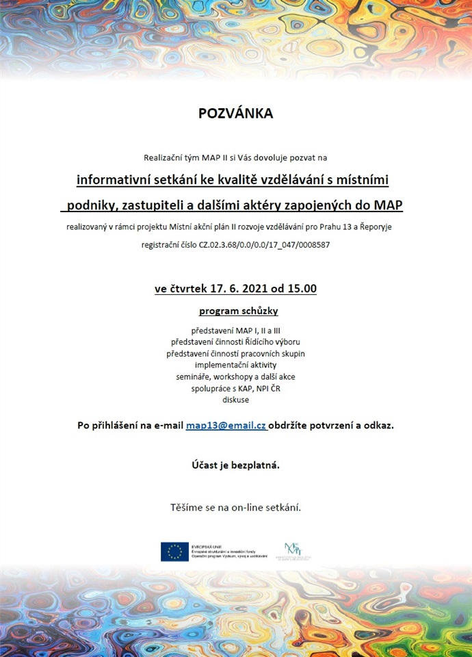 Realizační tým MAP II si Vás dovoluje pozvat na informativní setkání v on-line prostředí