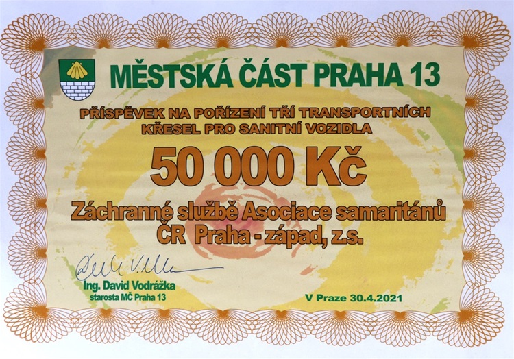 Praha 13 podpořila Záchrannou službu Asociace samaritánů ČR
