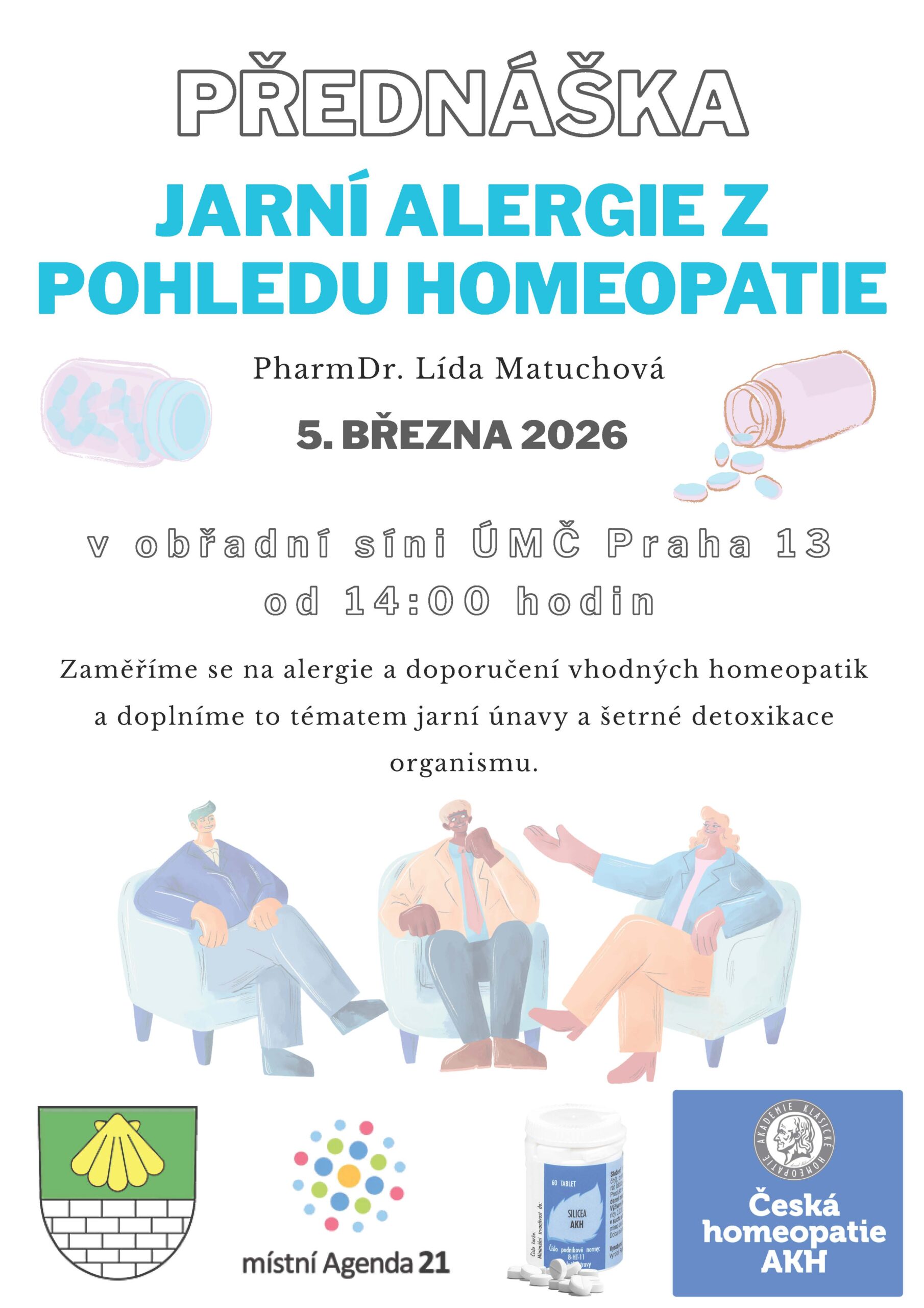 Zveme Vás na přednášku Jarní alergie z pohledu homeopatie. Přednáška se uskuteční ve čtvrtek 5. března od 14:00 hod. v obřadní síni radnice MČ Praha 13, Sluneční náměstí 2580/13.