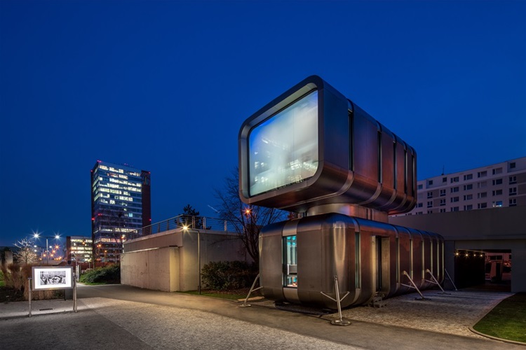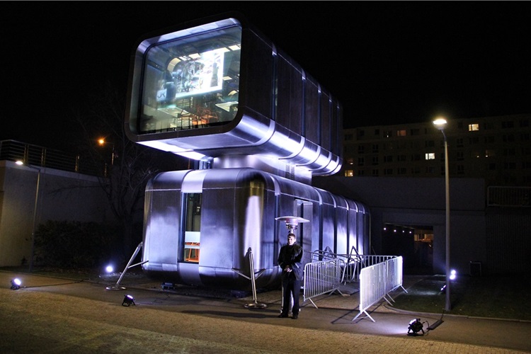 vesmírnou loď z budoucnosti. Spodní část objektu je delší, s horní