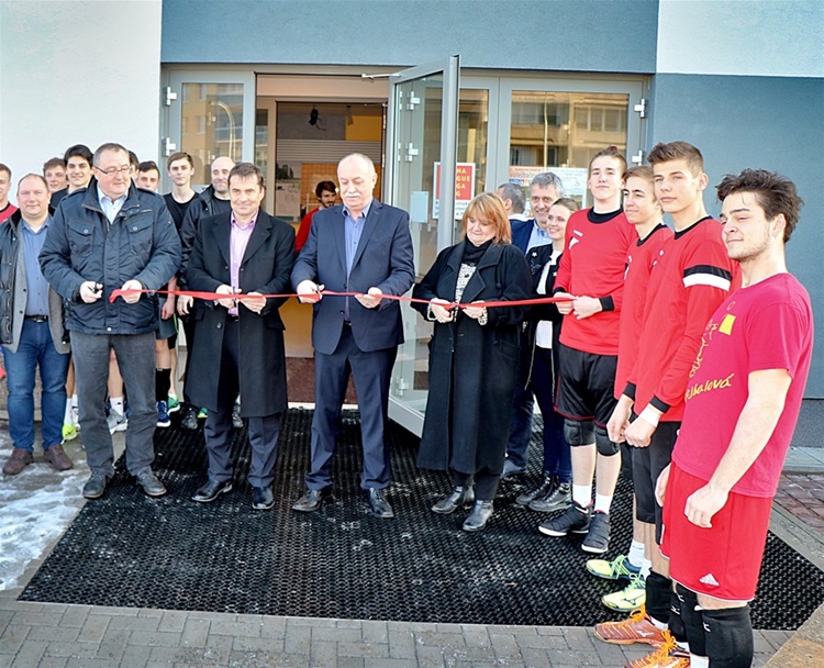 dokončena rekonstrukce vstupní části haly. Slavnostní přestřižení pásky