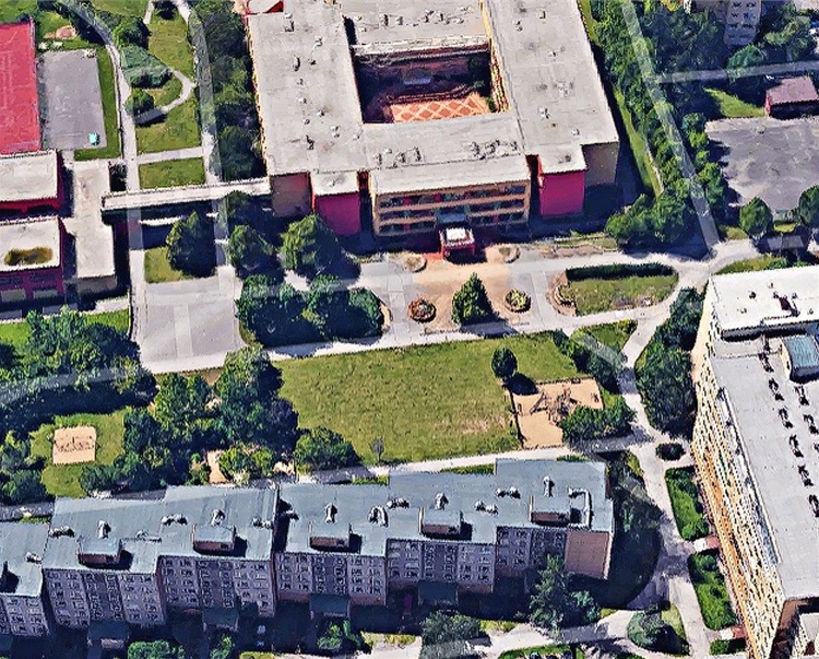 malá hřiště jsou v současné době roztroušena po celé ploše vnitrobloku.