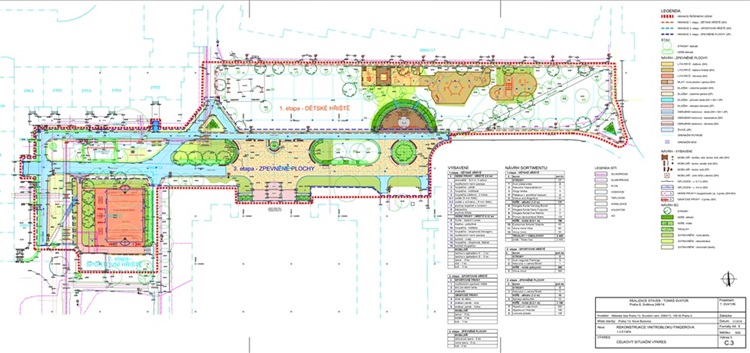 stávající hřiště budou odstraněna. Budou odstraněny některé keře a 3 menší