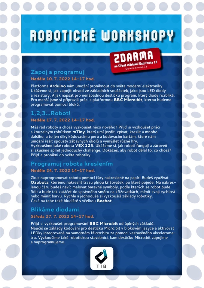 vyzkoušet programování a sestavování robotů pod vedením odborníků.