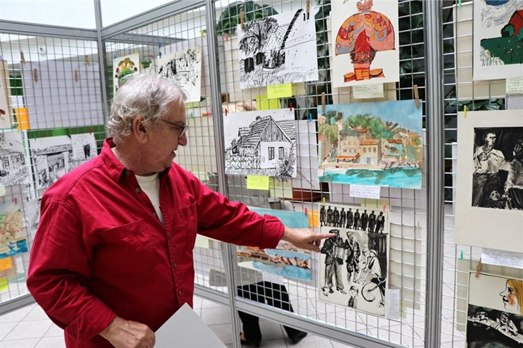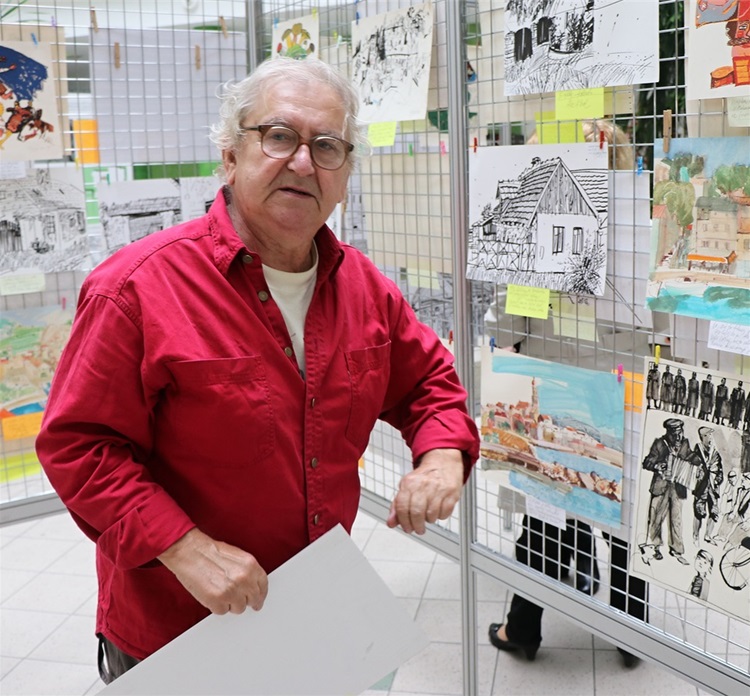 Kreslíř, ilustrátor a grafik v jedné osobě – pan Ladislav Hojný vystavuje své umění v atriu radnice. Výstava je takzvaně rozdávací, máte tedy jedinečnou možnost odnést si s sebou vybraný výtvor domů.
