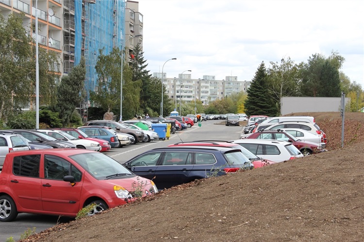 hrany na straně bytových domů. Původní kapacita byla navýšena o 59 parkovacích