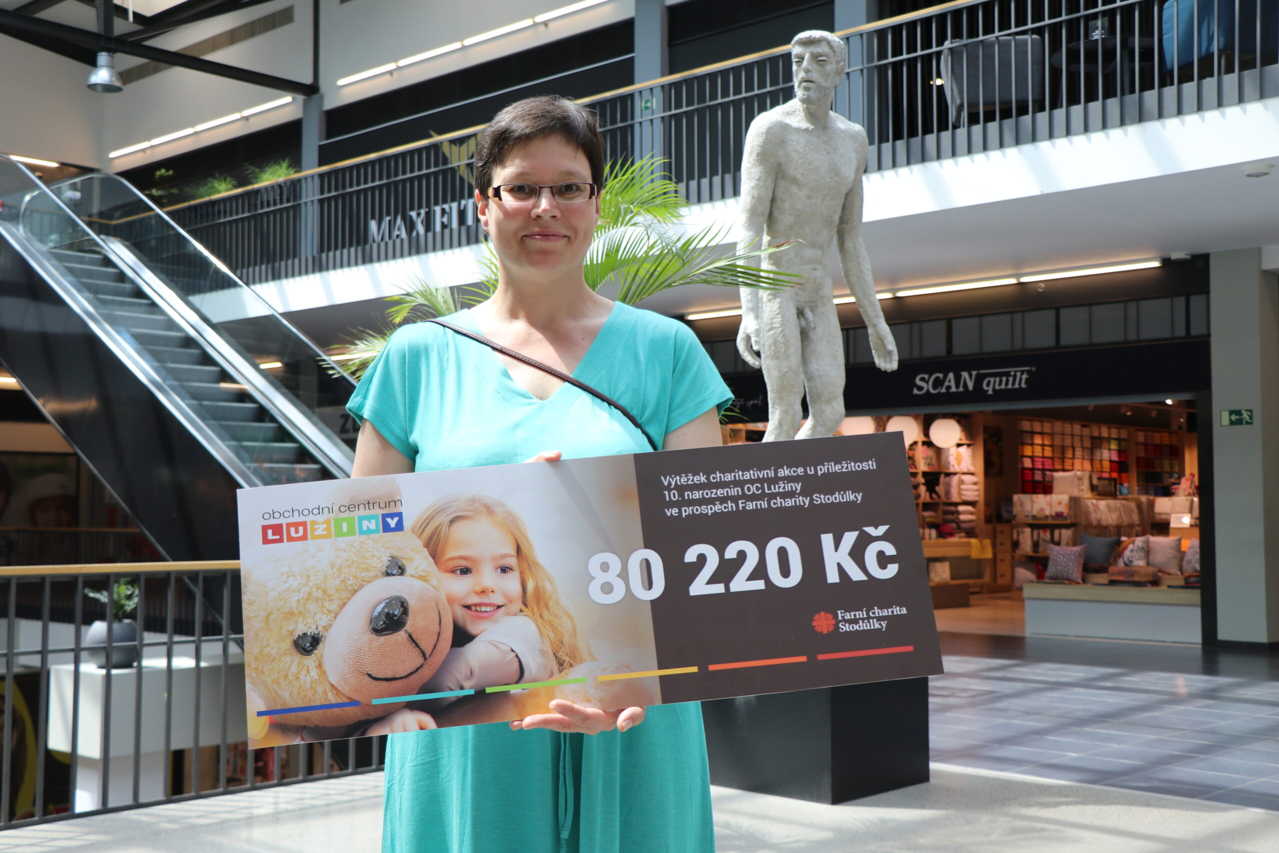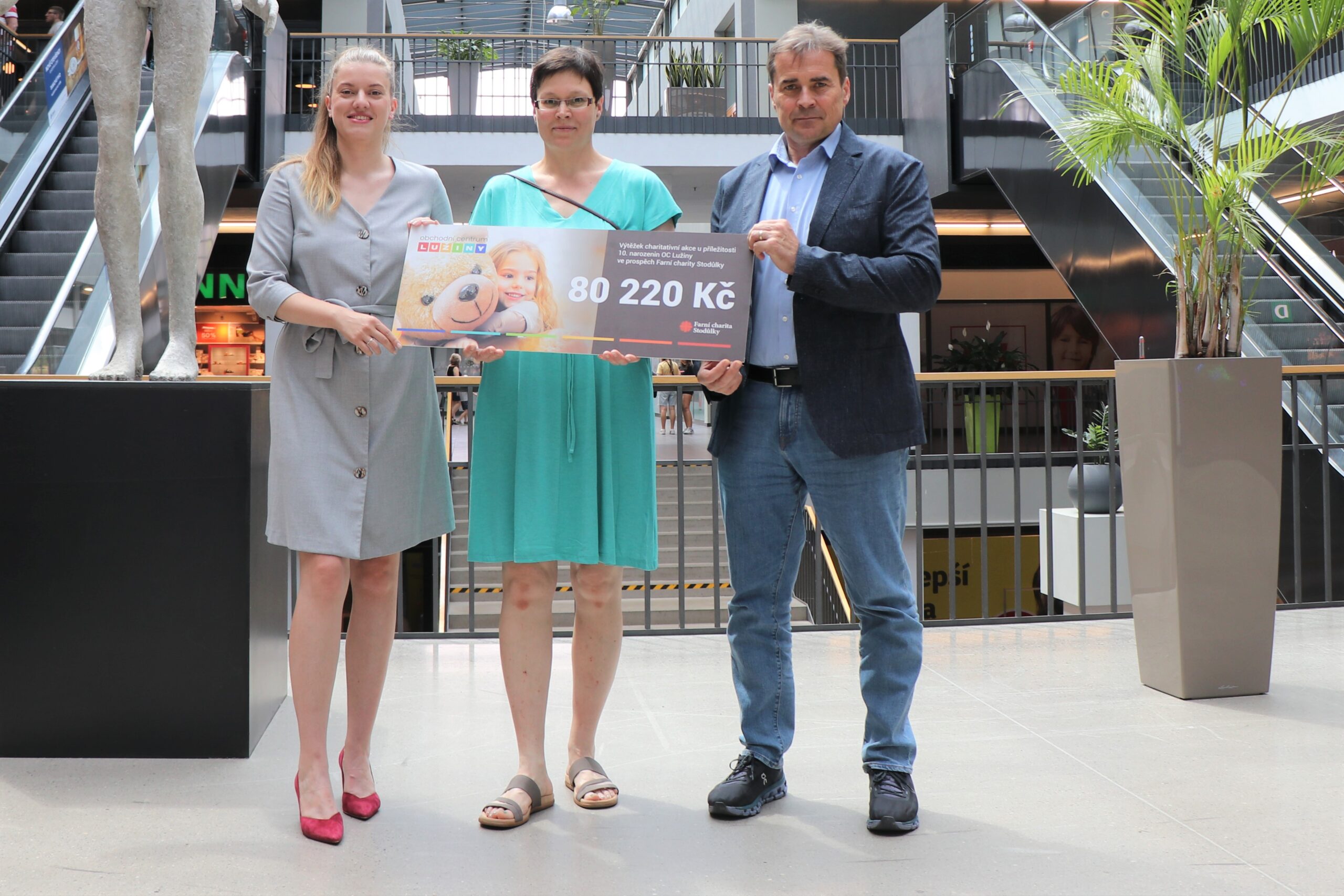 V rámci 10. výročí od otevření OC Lužiny byla vyhlášena charitativní akce. Během května si návštěvníci mohli kupovat losy, na které vyhráli různé věcné věci od vedení OC Lužiny. Jeden los stál 20 korun a celý výtěžek putuje na pomoc lidem v městské části Praha 13. Symbolický šek ve výši 80 220 Kč si z rukou starosty Prahy 13 Davida Vodrážky a ředitelky OC Lužiny Moniky Kindlové převzala ředitelka Farní charity Stodůlky – paní Helena Ryklová. Finance budou použity na pomoc rodinám s dětmi v městské části Praha 13, kde Farní charita Stodůlky působí.