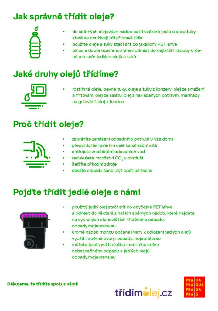- kromě nádob mohou občané Prahy k odložení jedlých olejů využít i sběrné dvory: odpady.mojepraha.eu