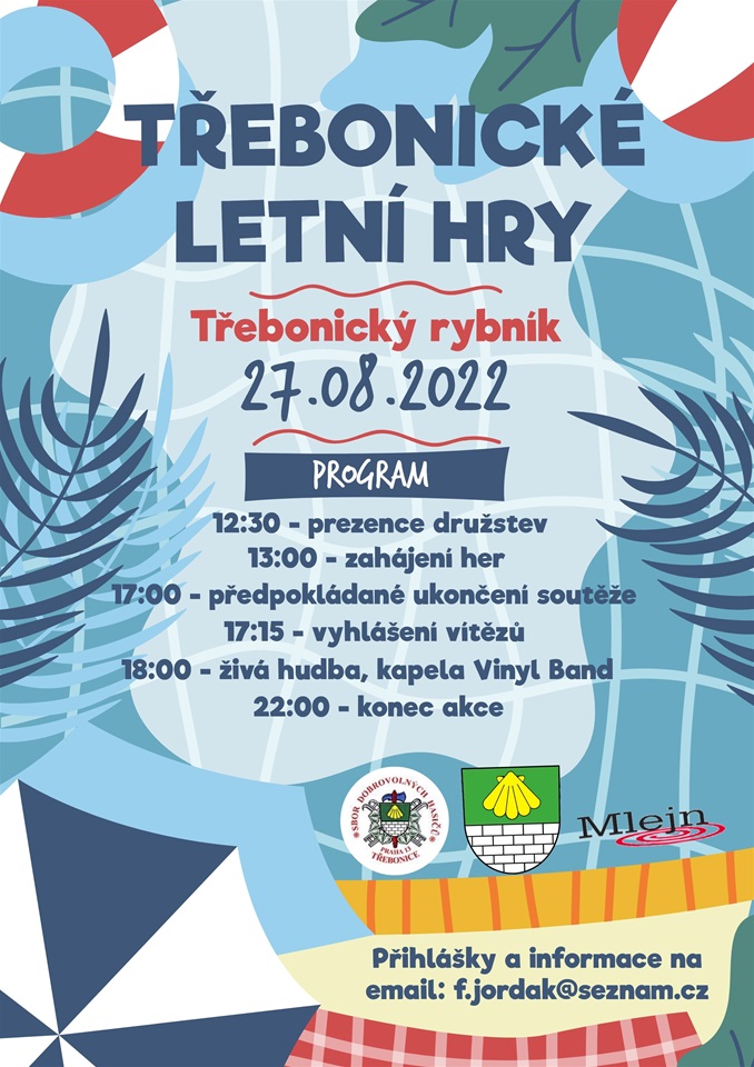 Městská část Praha 13, Sbor dobrovolných hasičů Třebonice a Kulturní dům Mlejn zvou všechny sportovní fanoušky na 22. ročník tradičních her. Přijďte si zasportovat nebo jen fandit. Diváci mají vstup zdarma. Občerstvení a doprovodný program jsou zajištěny.
