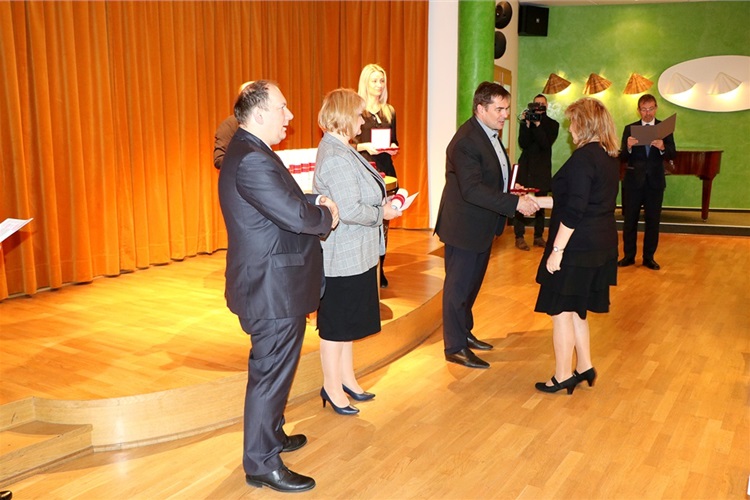 Navržení pedagogičtí pracovníci převzali z rukou starosty Davida Vodrážky,