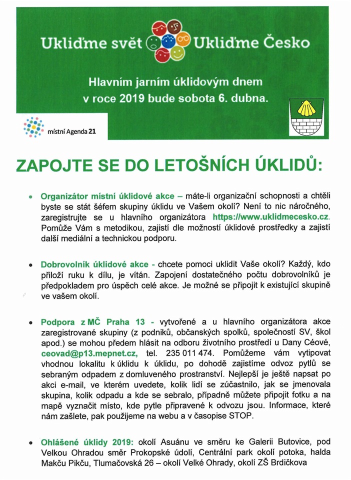Ukliďme spolu v sobotu 6. dubna cyklostezku do Prokopského údolí za Galerií Nové Butovice)v rámci projektu