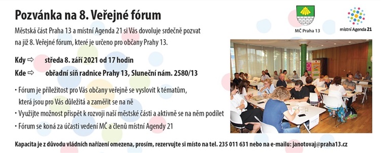 8. VEŘEJNÉ FÓRUM PRO OBČANY PRAHY 13 – 8. 9. 2021