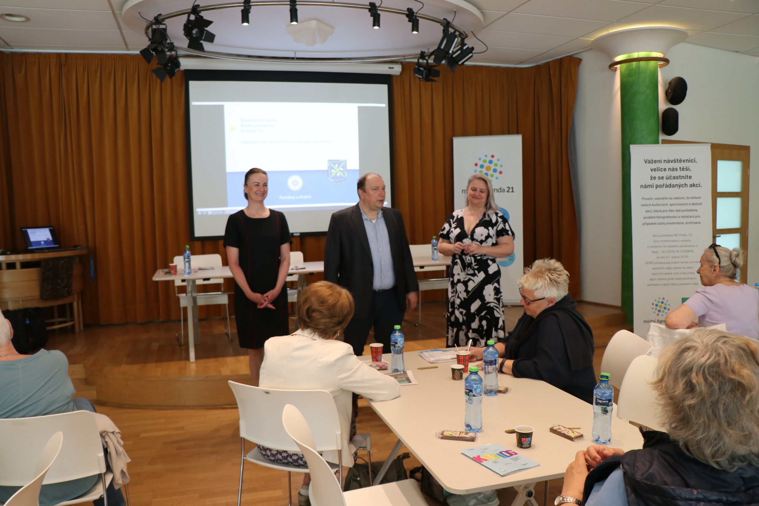 Na radnici MČ Praha 13 v obřadní síni se konaly ve dnech 2. a 6. května 2024 tématické přednášky pro seniory na téma kyber hrozeb a novodobých šmejdů. Akce byla pořádána místní Agendou 21 ve spolupráci s Policií České republiky, která se snaží zvýšit povědomí veřejnosti o možných nebezpečích spojených s internetem a moderními technologiemi.