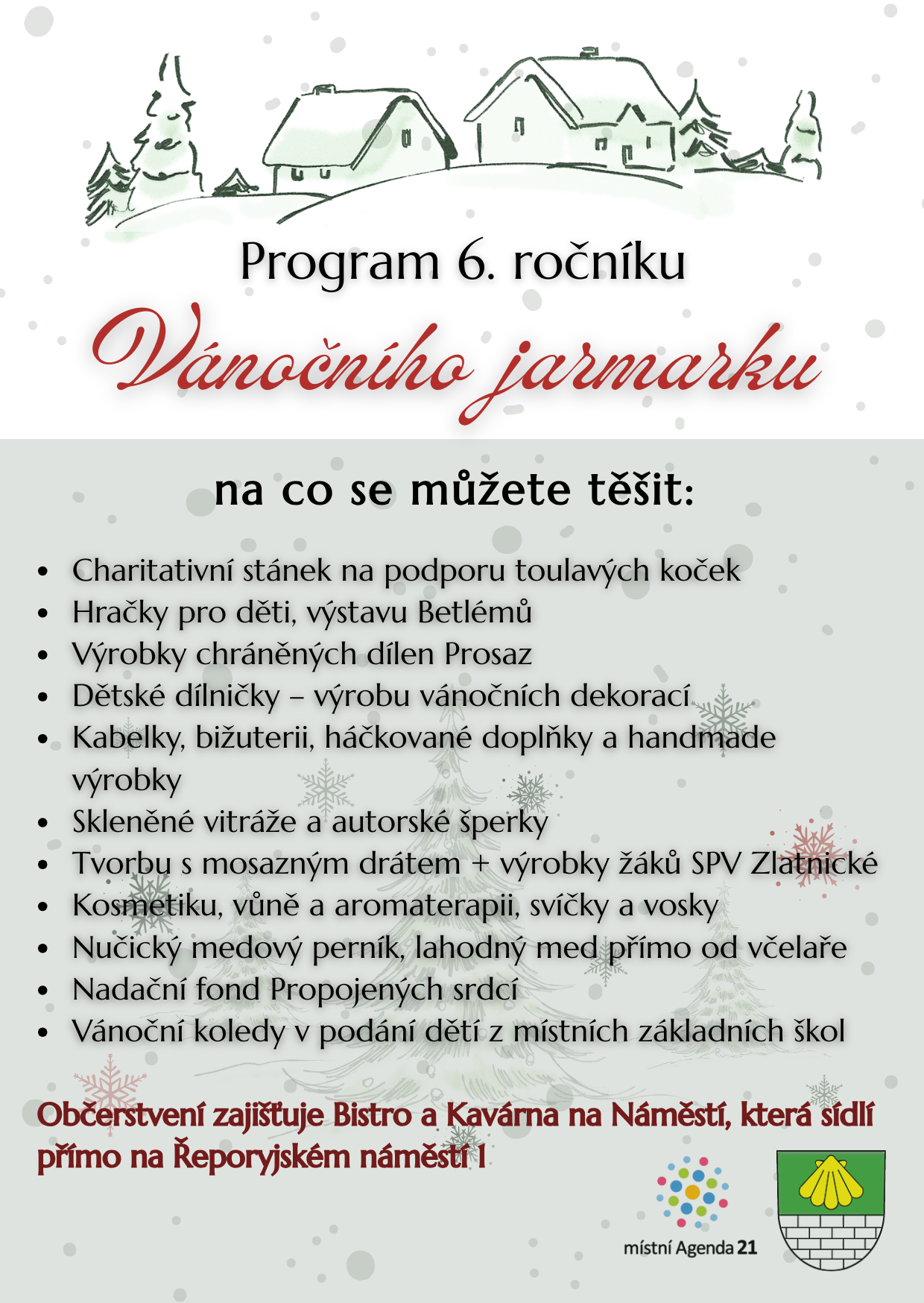 Tato tradiční předvánoční akce nabízí jedinečnou příležitost k setkání, nákupu originálních dárků a načerpání sváteční atmosféry. Připraven je bohatý doprovodný program i pestrá nabídka vánočního sortimentu.