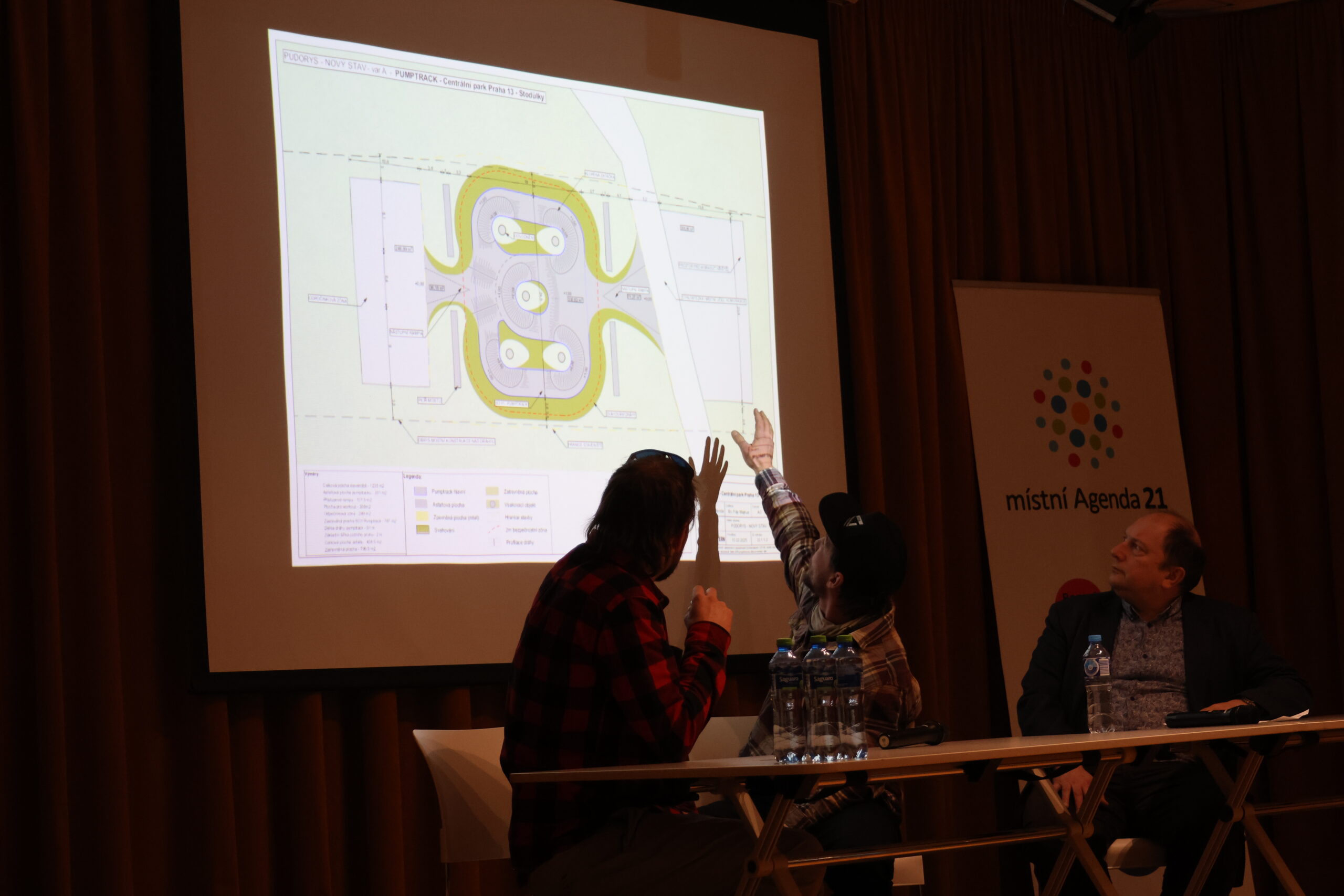 Pan Majkus společně s panem Ing. Bendou následně popsali charakteristiku pumptracku jako uzavřeného asfaltového okruhu navrženého pro jízdu na kolech, skateboardech a koloběžkách, který je navržen s minimálními nároky na údržbu, což zajišťuje jeho vysokou funkčnost. Dráha je koncipována jako „bezúdržbová“ s dlouhou životností, přičemž její povrch je prakticky nezničitelný. Návrh počítá s umístěním dráhy pod silničním mostem Jeremiášova, kde se v současné době nachází zanedbaný a nevyužitý prostor, který je často znehodnocován nepovolenými skládkami odpadu. Tímto umístěním se dráha stává využitelnou za jakéhokoli počasí.
