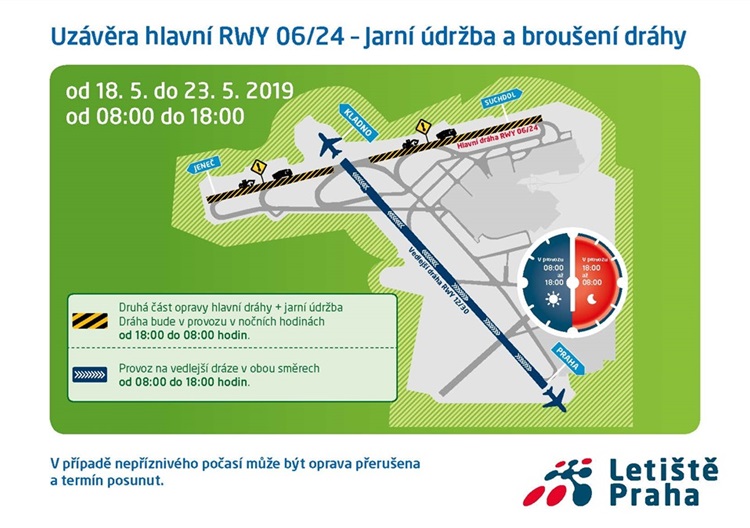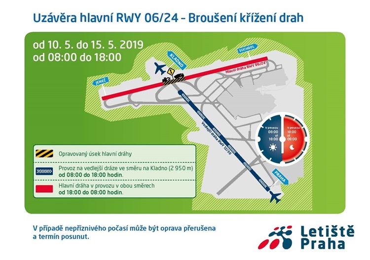 zbytek hlavní dráhy a provoz bude probíhat na vedlejší dráze 12/30, a to