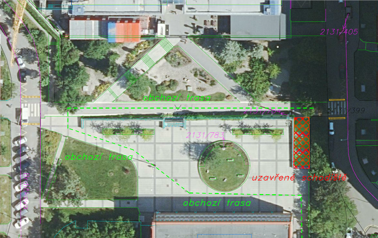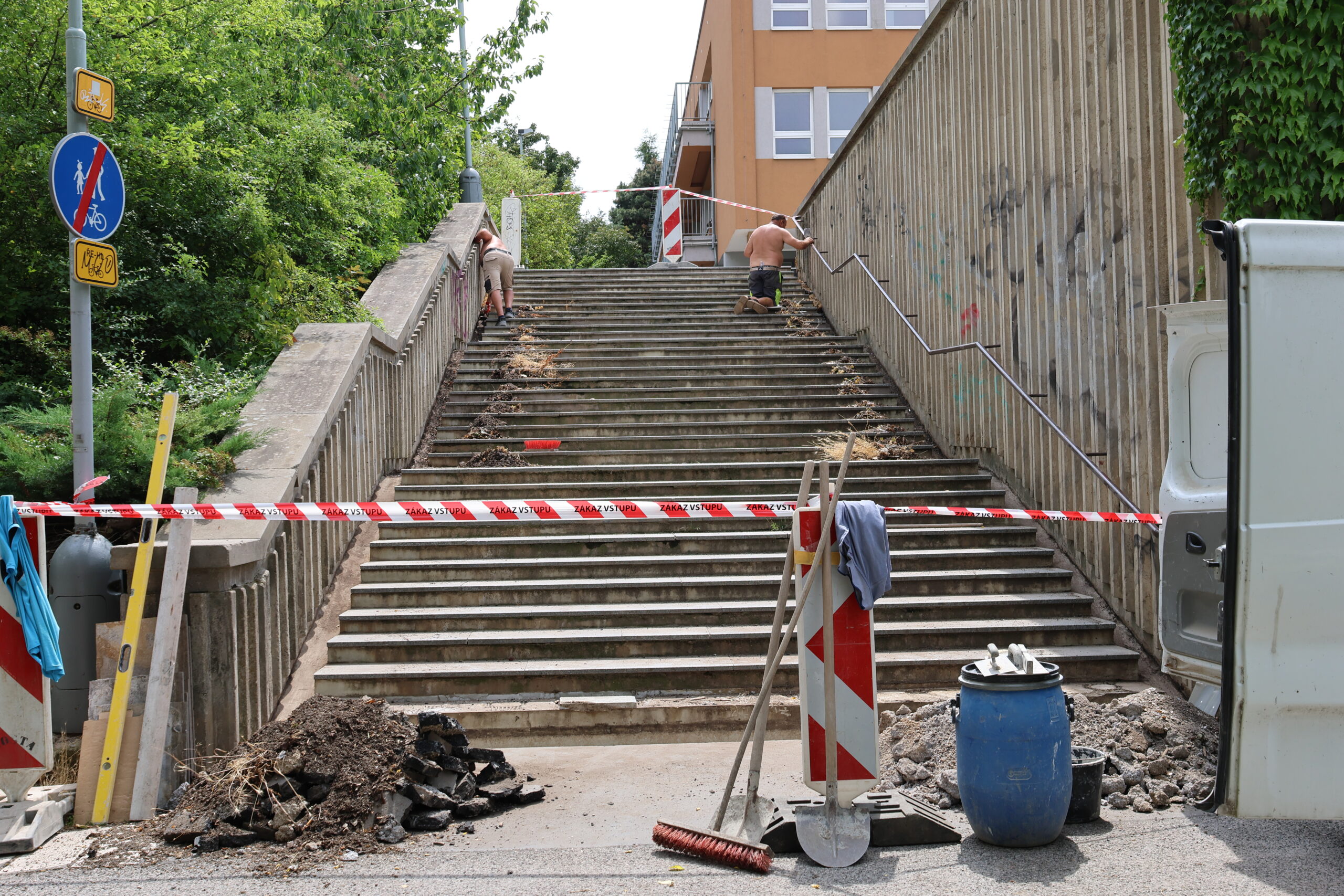 V termínu 14. 7. do 20. 8. 2025 proběhne kompletní rekonstrukce schodiště před FZŠ Brdičkova za OC Lužiny. V přiloženém plánku je zakreslena obchozí trasa pro chodce.