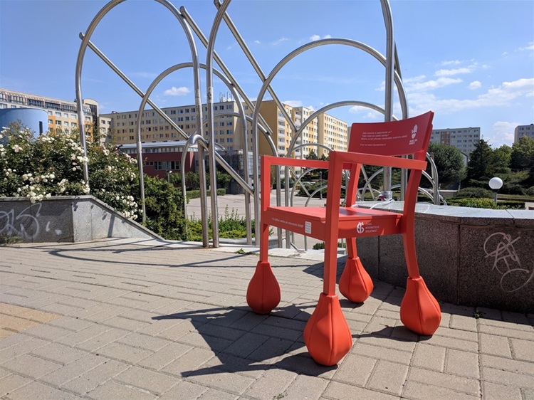 V Praze 13 se oranžová židle objevila před budovou radnice na Slunečním